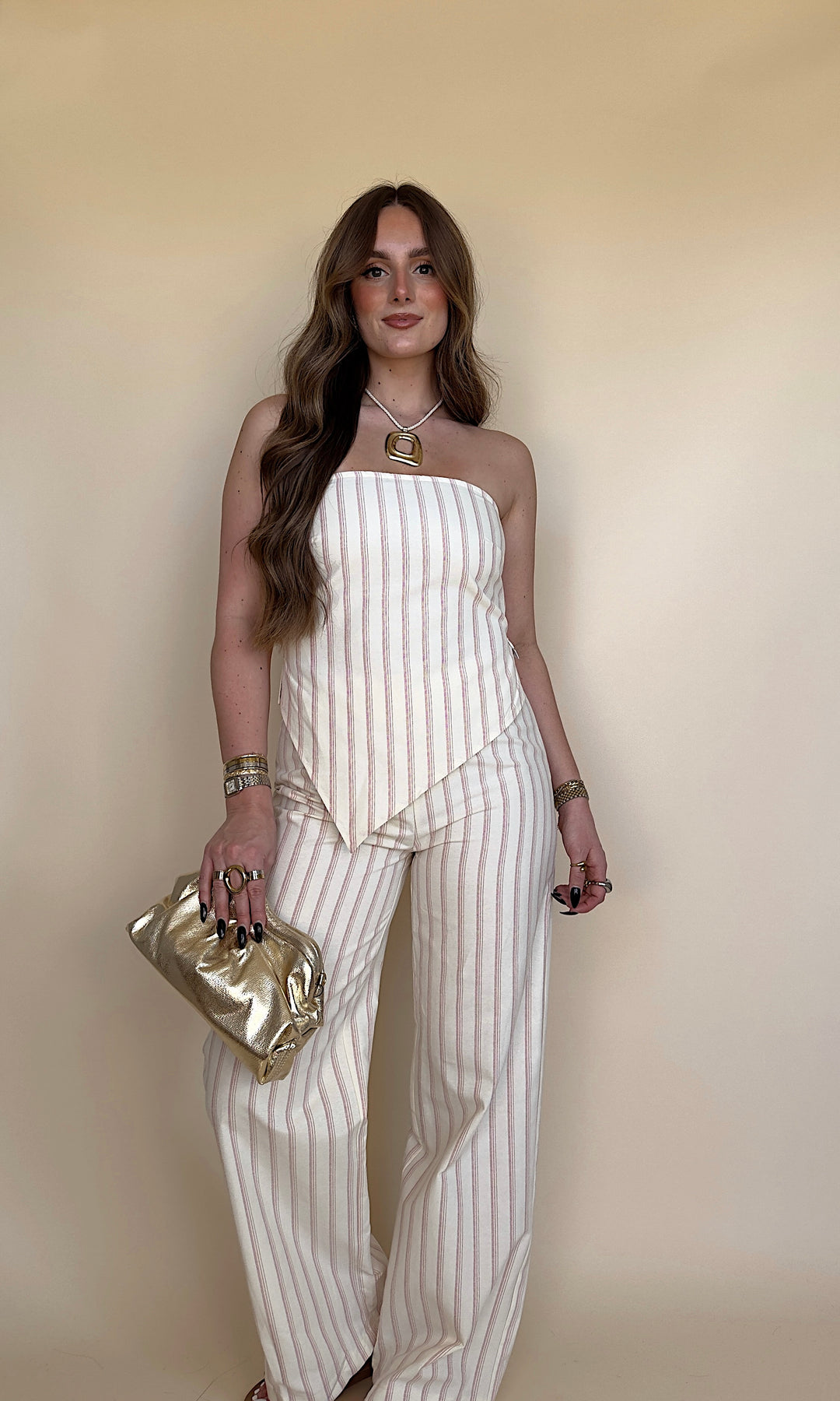 These pink striped trousers are perfect for your next vacation!! Match them with All Smiles Top or with a simple basic!