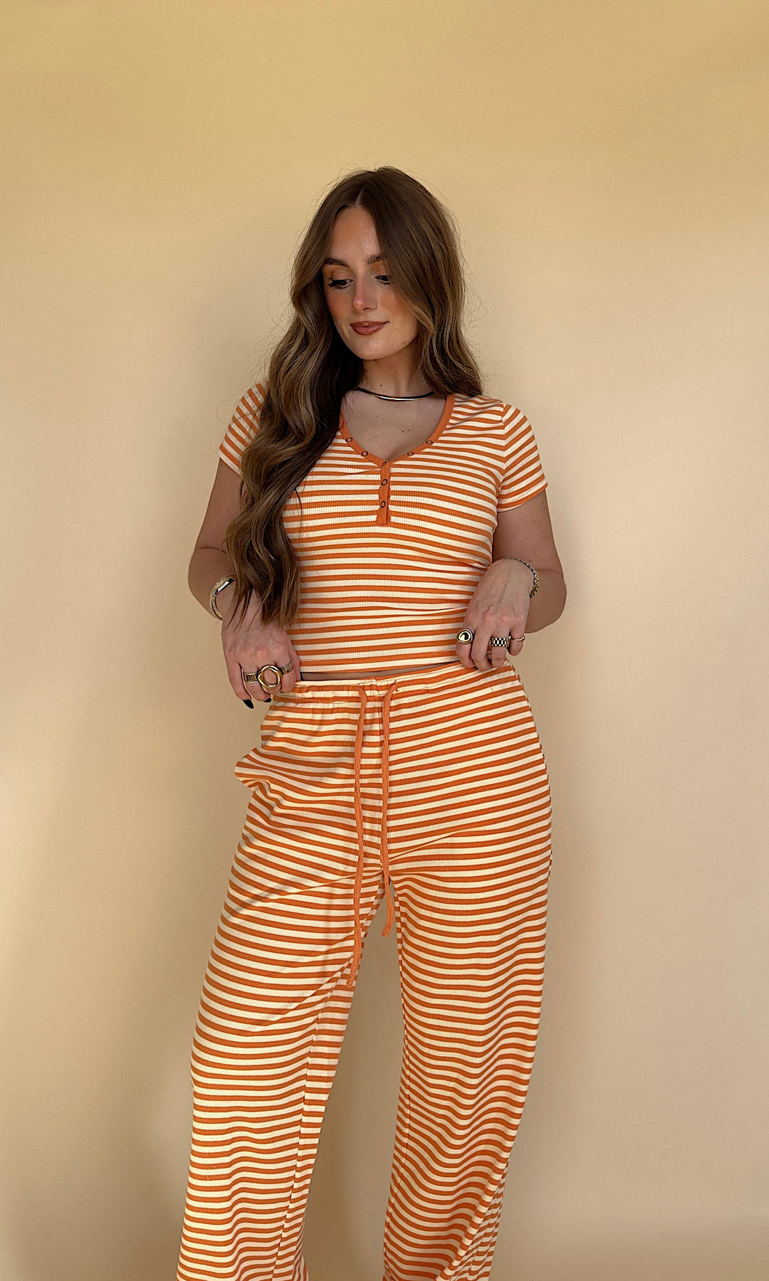 Wanna give IT girl on campus? This set is the way to do it! These striped loungewear pants with a relaxed fit pair perfect with the matching top or with a neutral oversized crew!