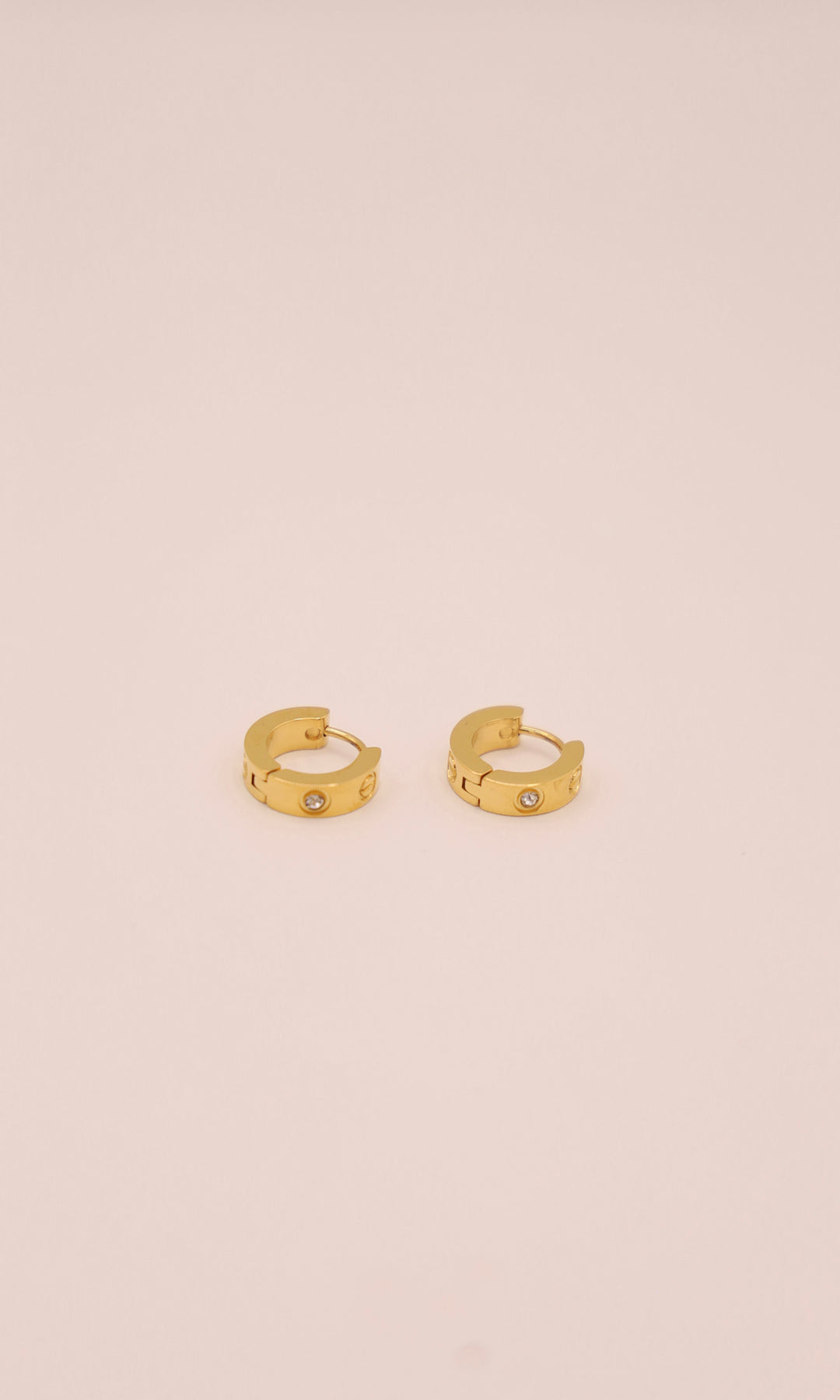 Who doesn't love a high end dupe? These gold huggies with circular designs and crystals throughout.