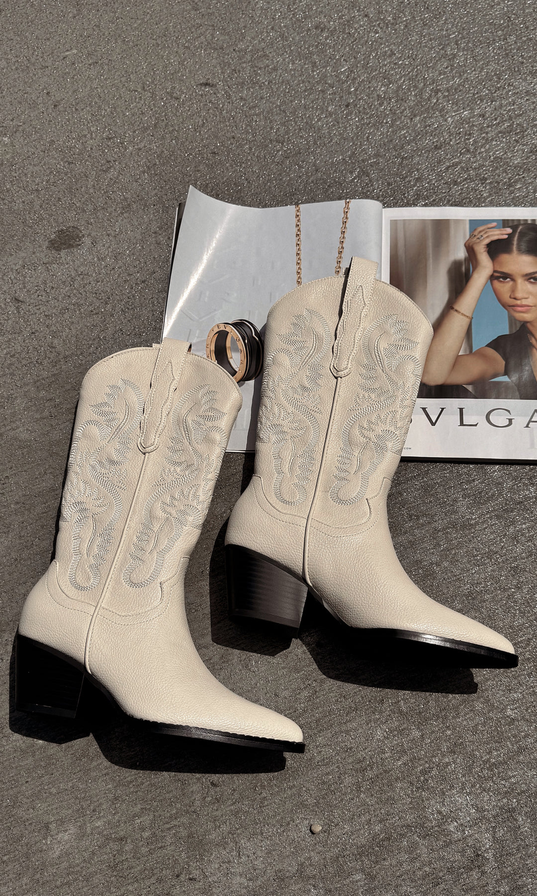 Western boot in a gorgeous red, camel, taupe, dusty blue, OR off white color - wear these throughout every season!
