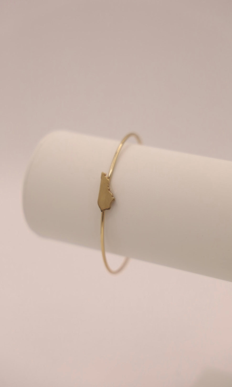 Dainty cuff bracelet with the Kentucky state shape in the center.