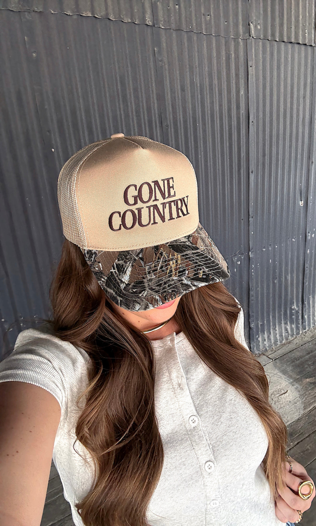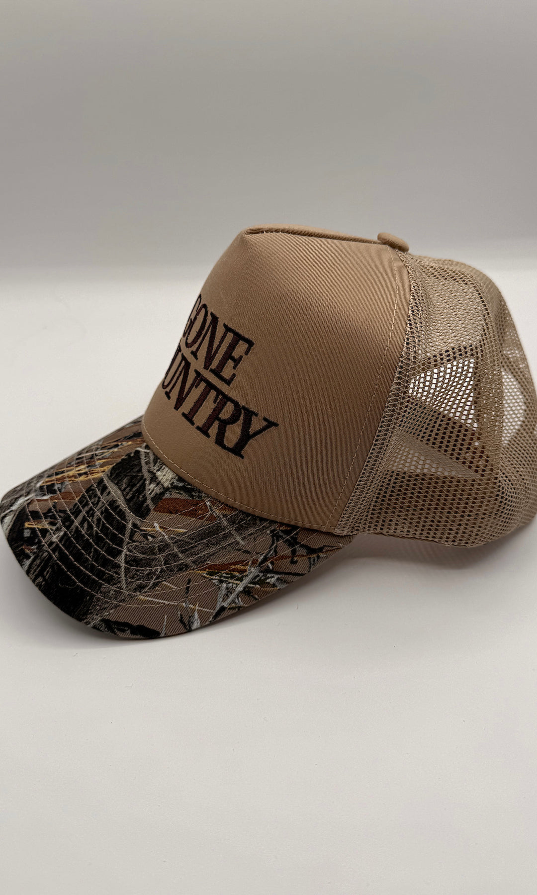 • Calypso has finally gone COUNTRY! This taupe hat with a camo brim and a mesh back is perfect for any concert or lake day this summer!
