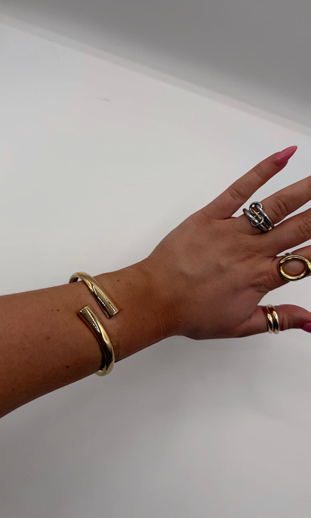 Dainty cuff with a gold or two tone finish.