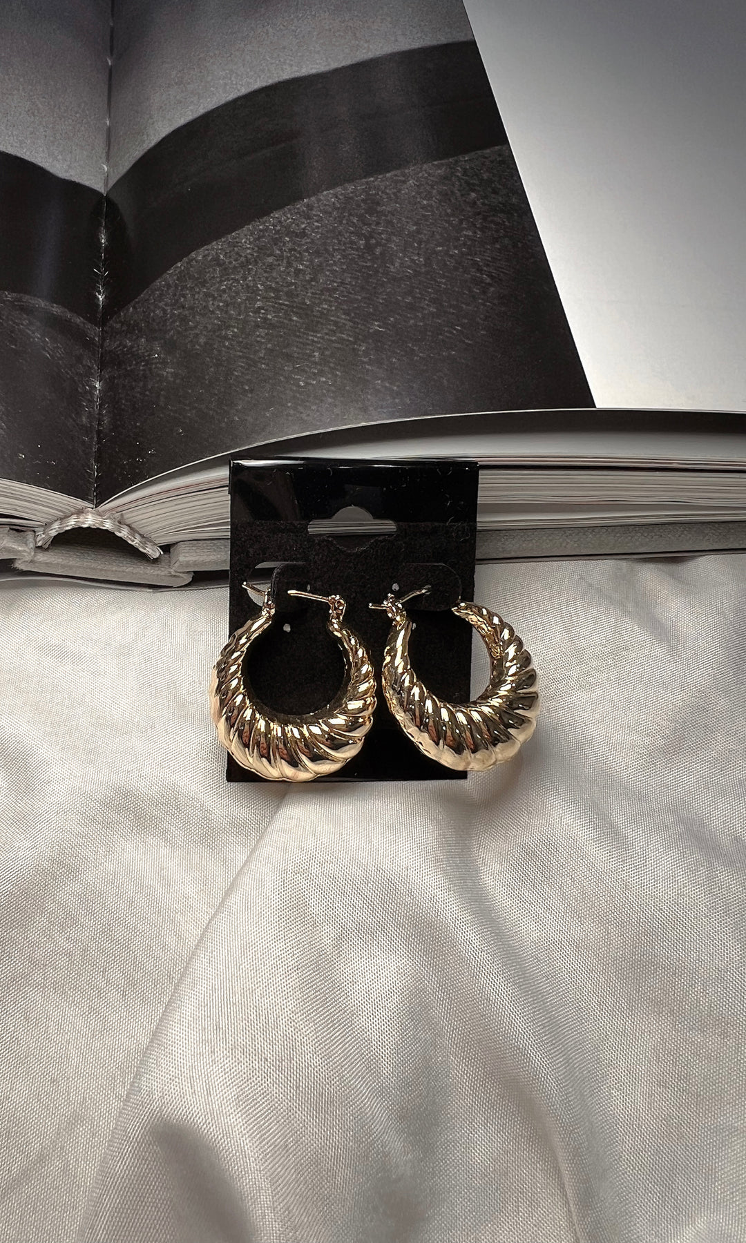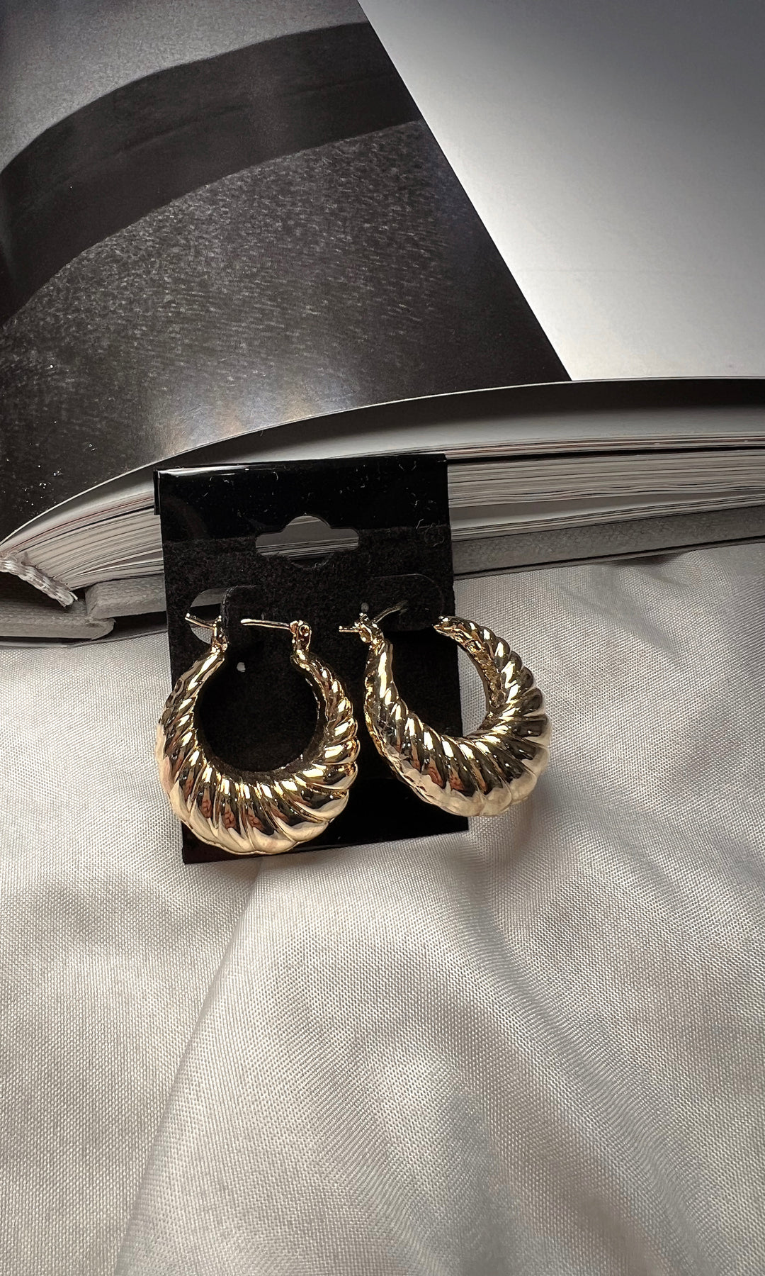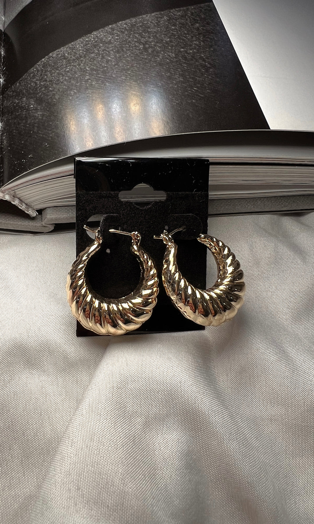 Thick gold hoops with a textured design. Perfect for everyday wear!