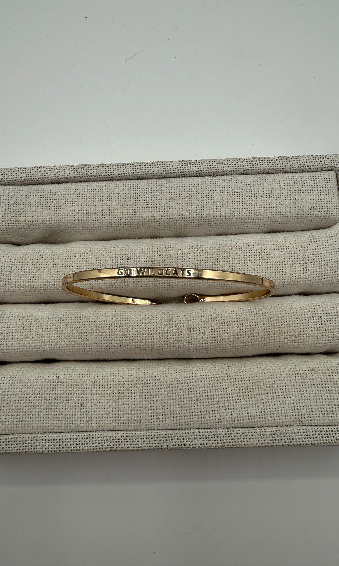 Small gold cuff with "Go Wildcats" engraved.