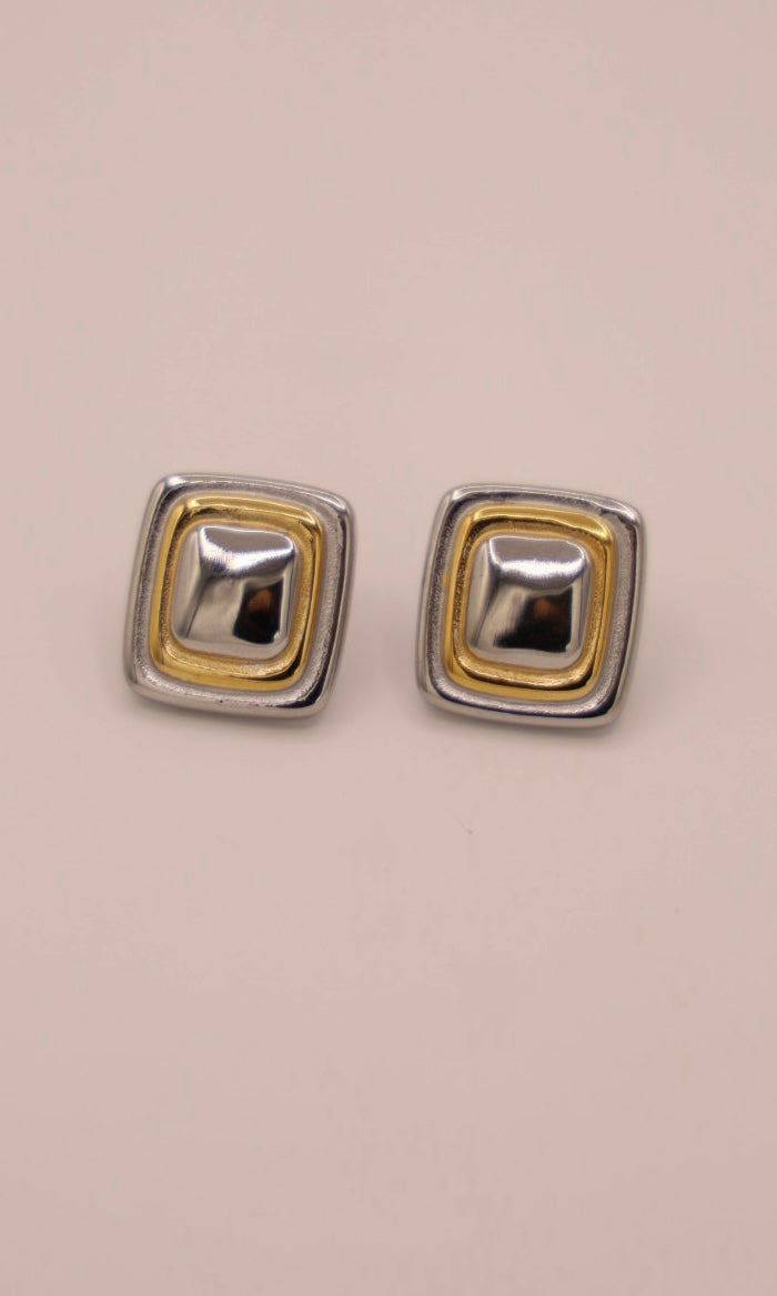 Statement studs are IN right now! These square shaped, two-tone earrings are the perfect earring for any formal event.