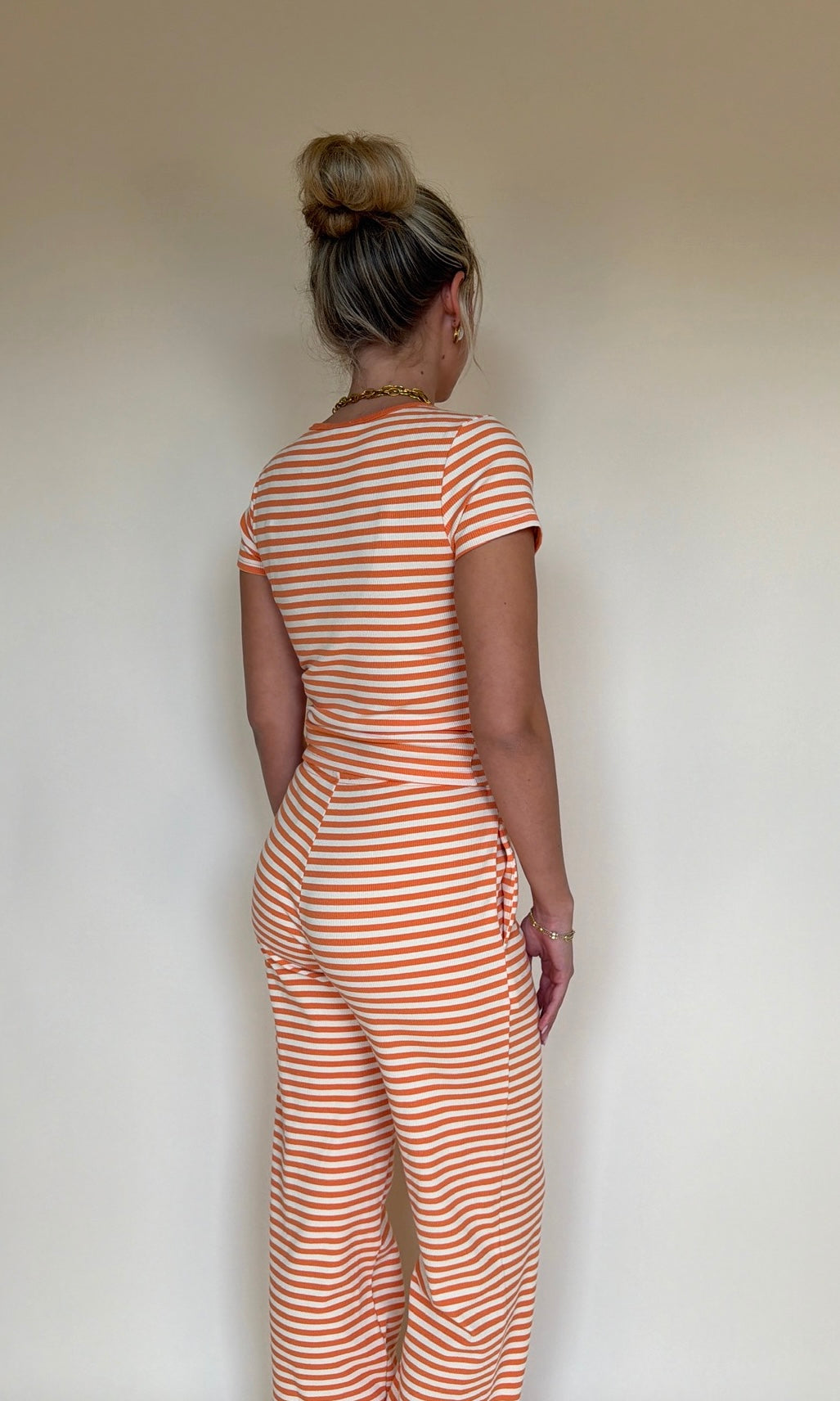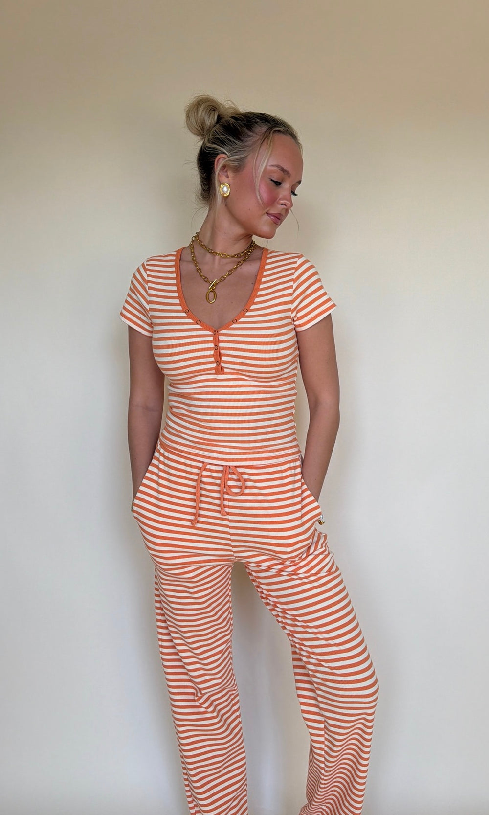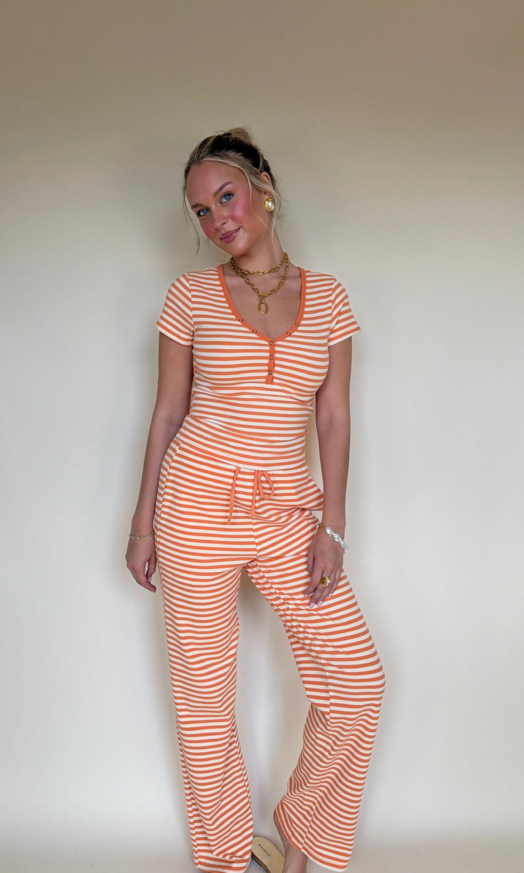 These baby tees ALWAYS give clean girl, especially when she comes with matching bottoms! This striped baby tee with a small button up on the front has a super comfy and stretchy material!