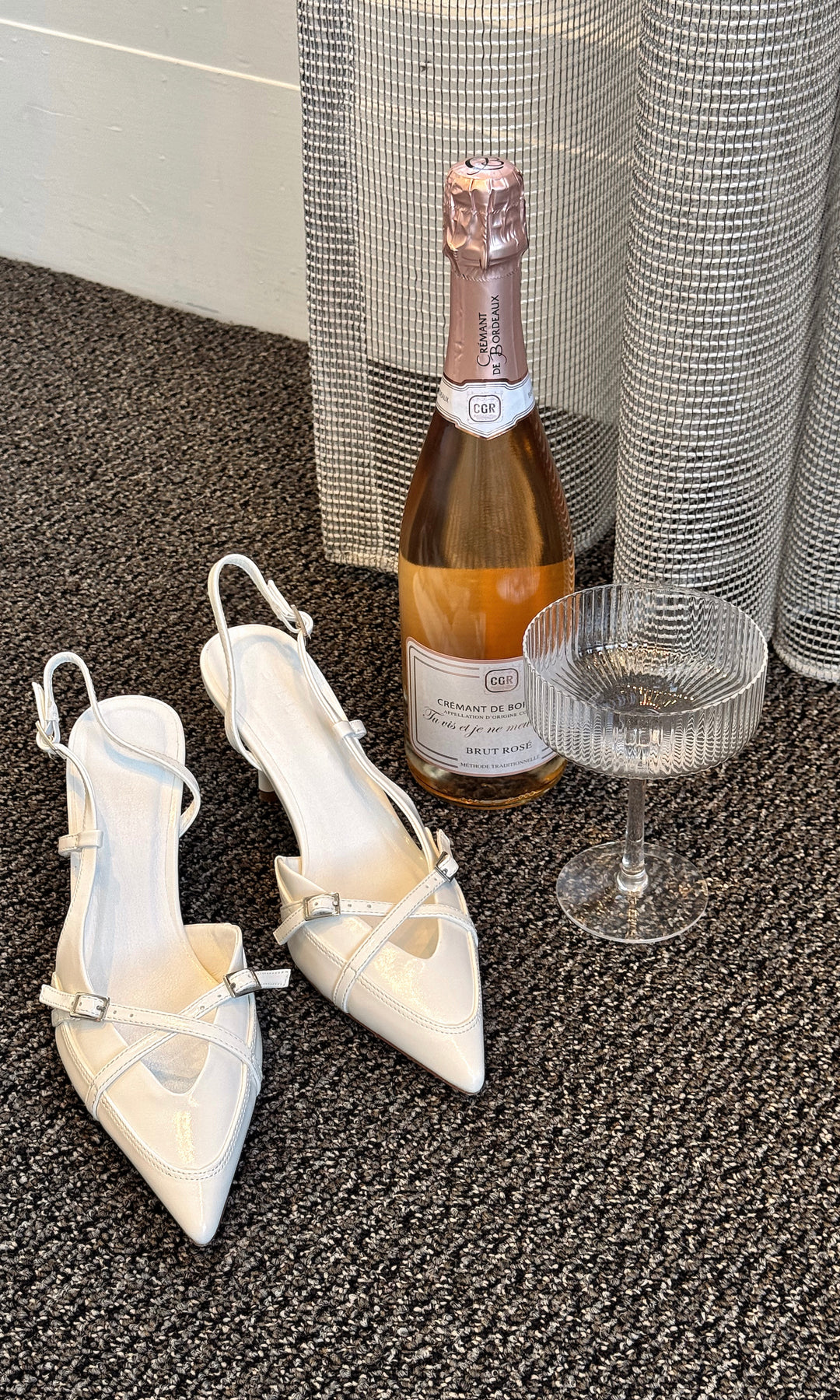 We can't get enough of kitten heels! Small buckle details on the top of the heel. These white heels with silver hardware are perfect for graduation, anything bride, or just to have in your collection!