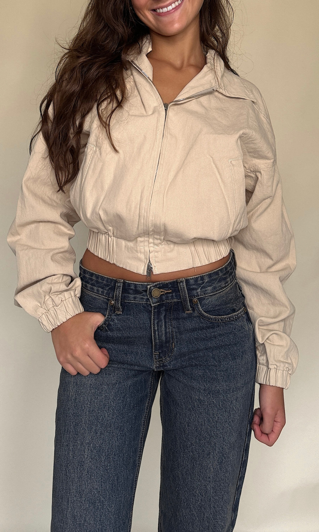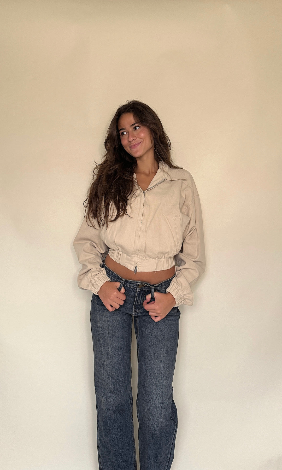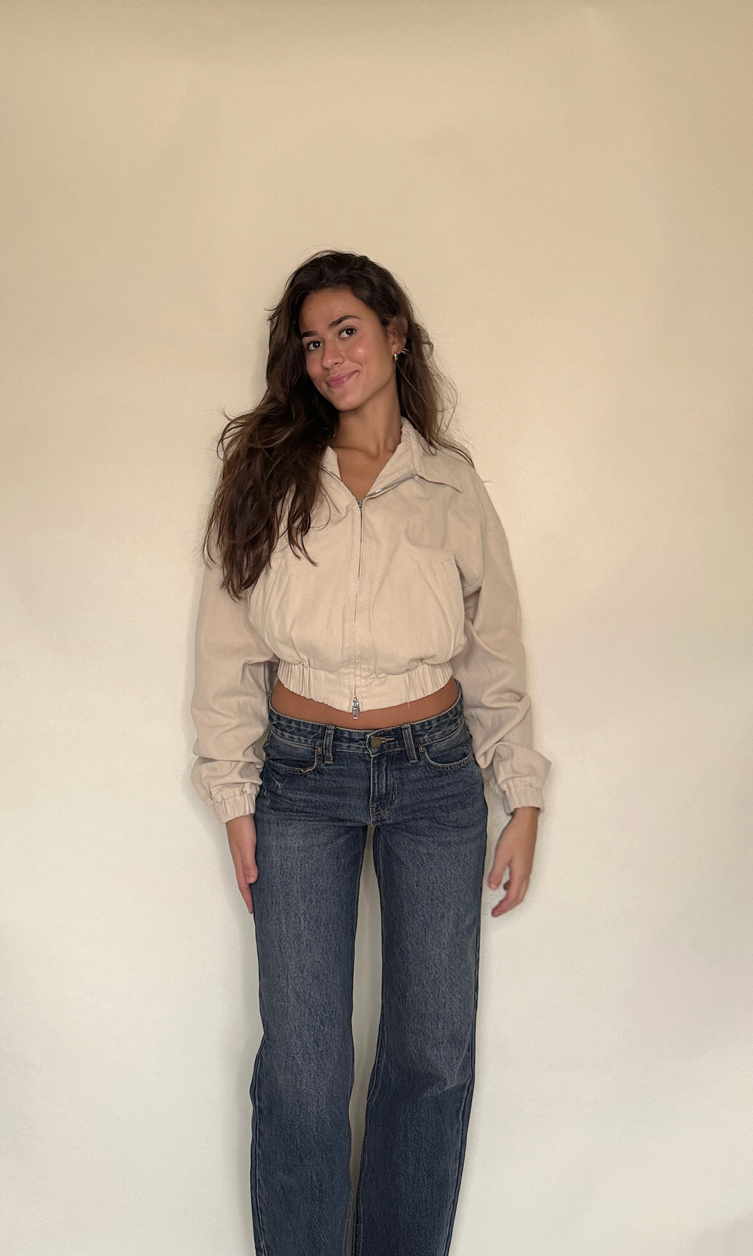 These jeans are giving early 2000s! The low-waisted fit with the vintage dark wash make her look extremely high end.