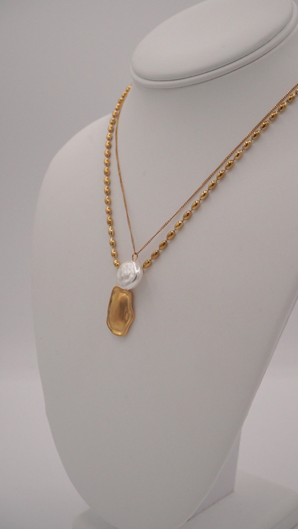 The cutest two layer gold necklace with a mix of dainty and chunky pendents!