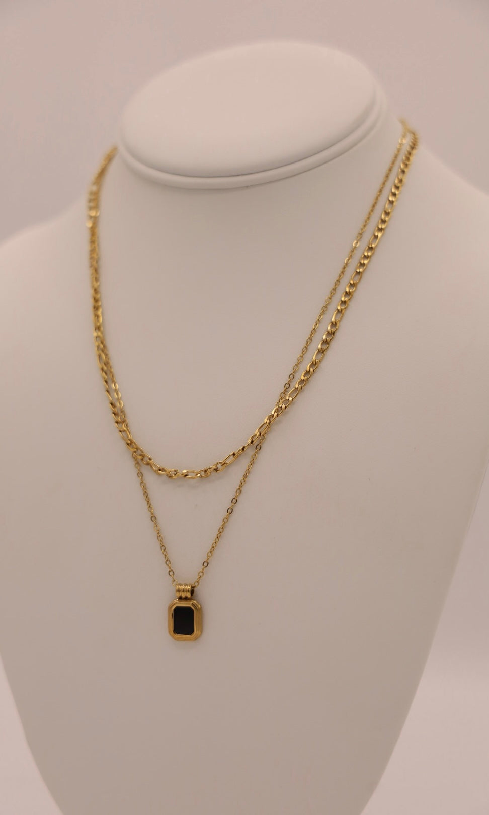 A classy gold layered necklace with black pendant!