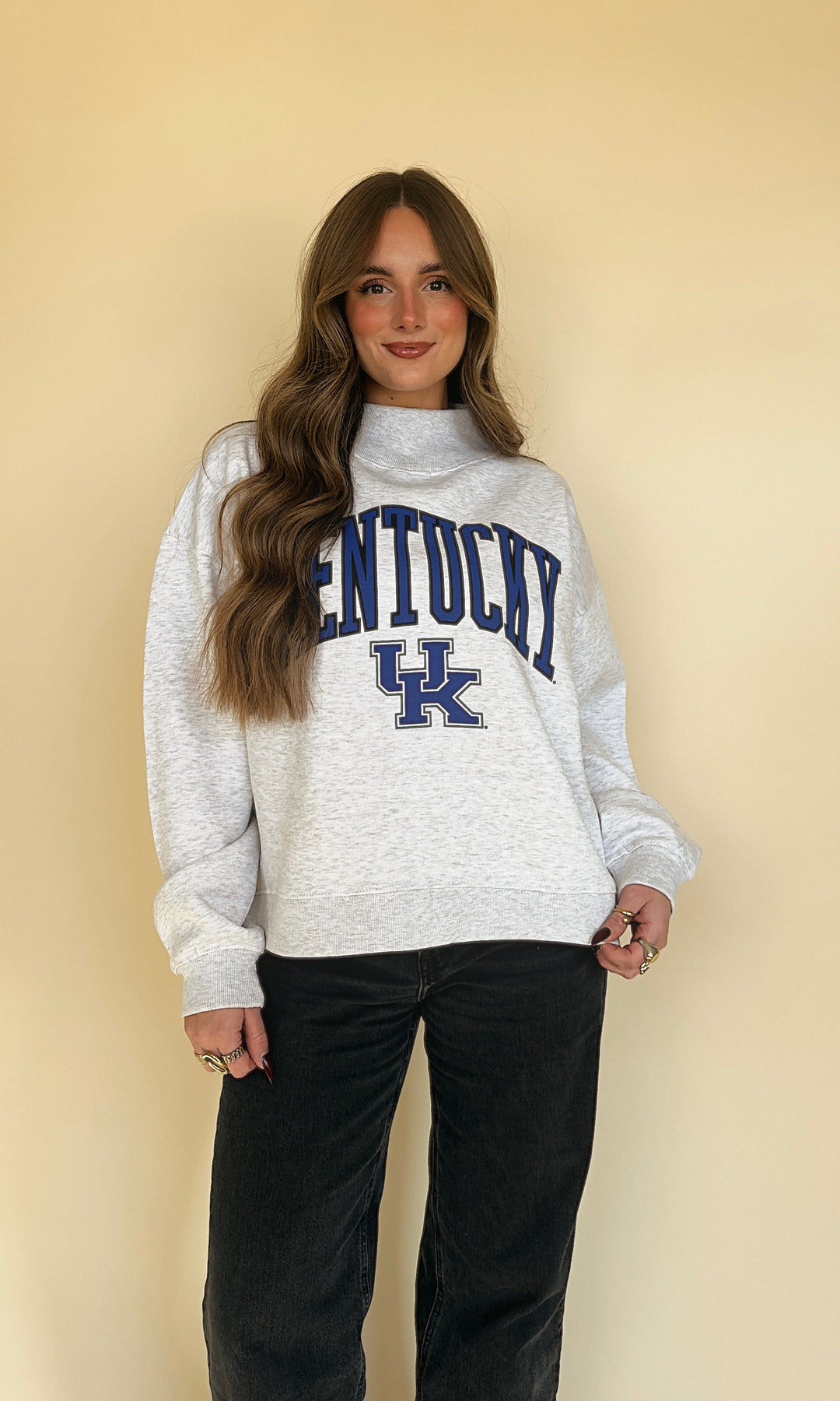 THE KENTUCKY MOCKNECK of the year! This ash grey sweatshirt features a loose-fit waistline and a notched and relaxed-fit neck.