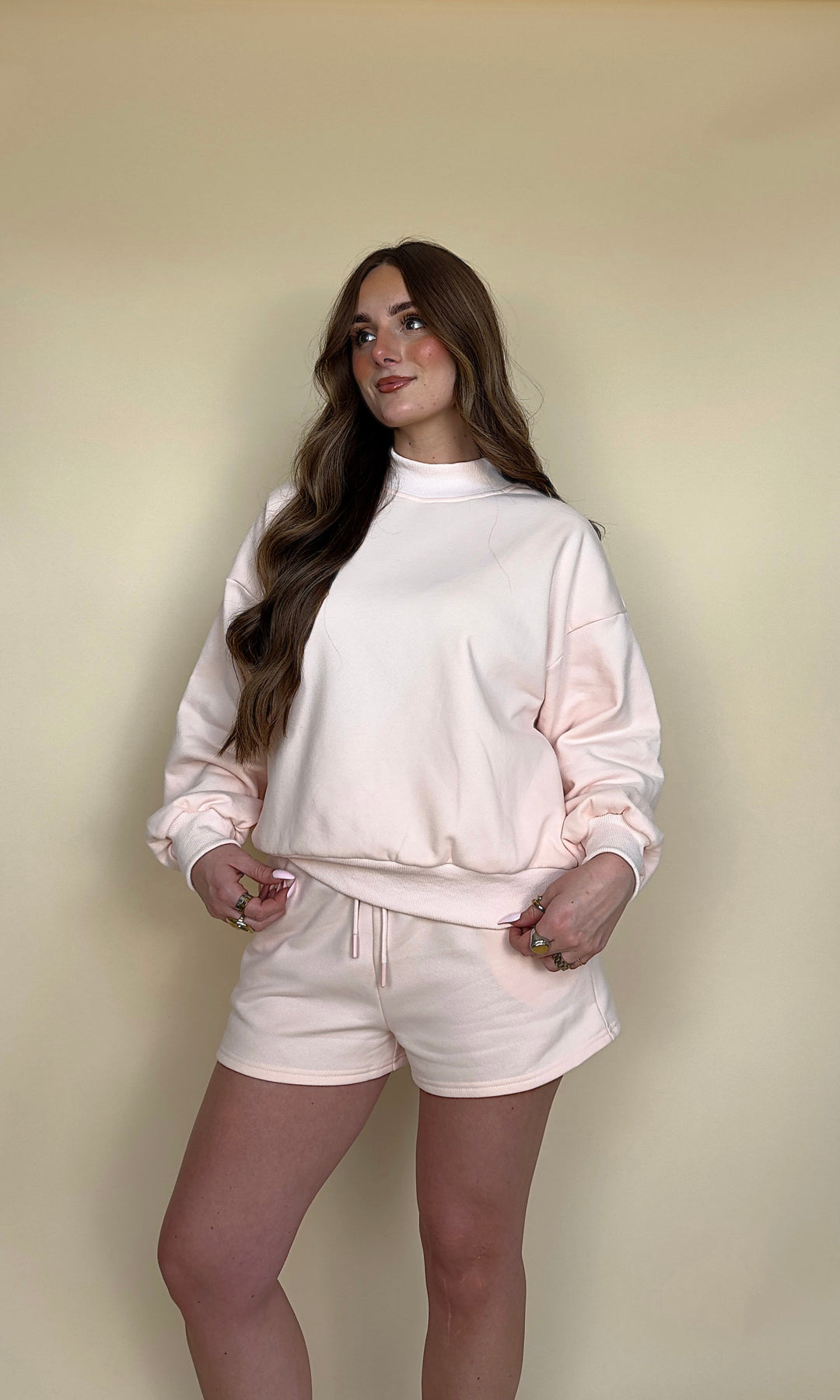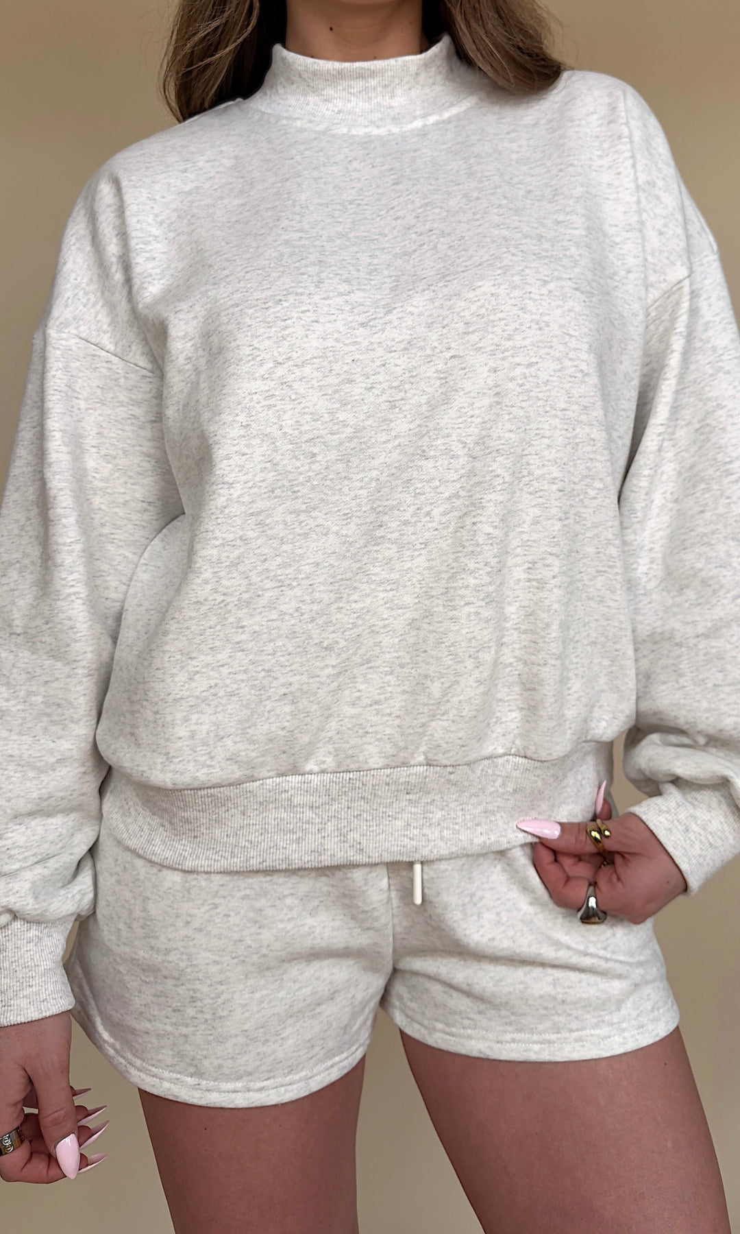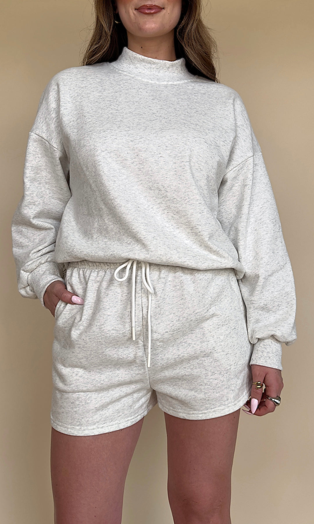 Your next OBSESSION is here!! The Lounge Life Short comes in pink, blue, and grey and has a matching Mockneck!!