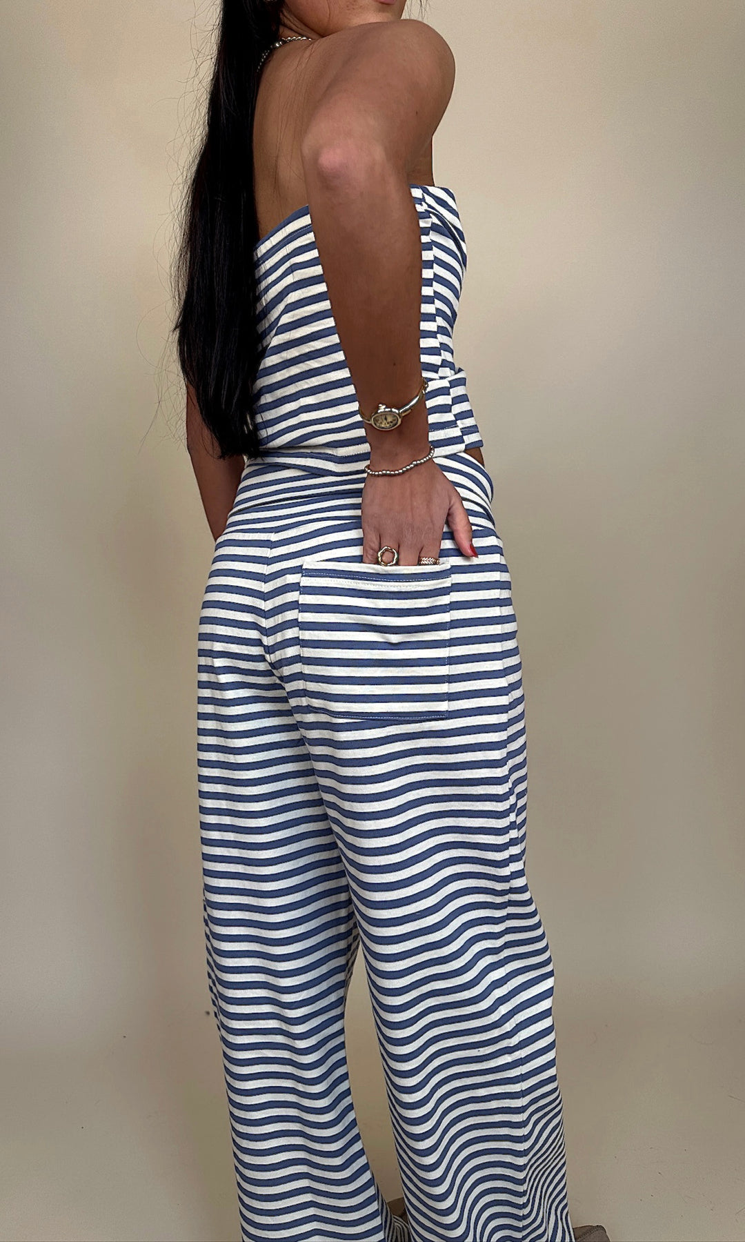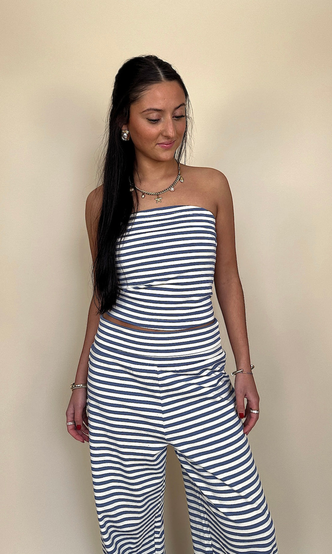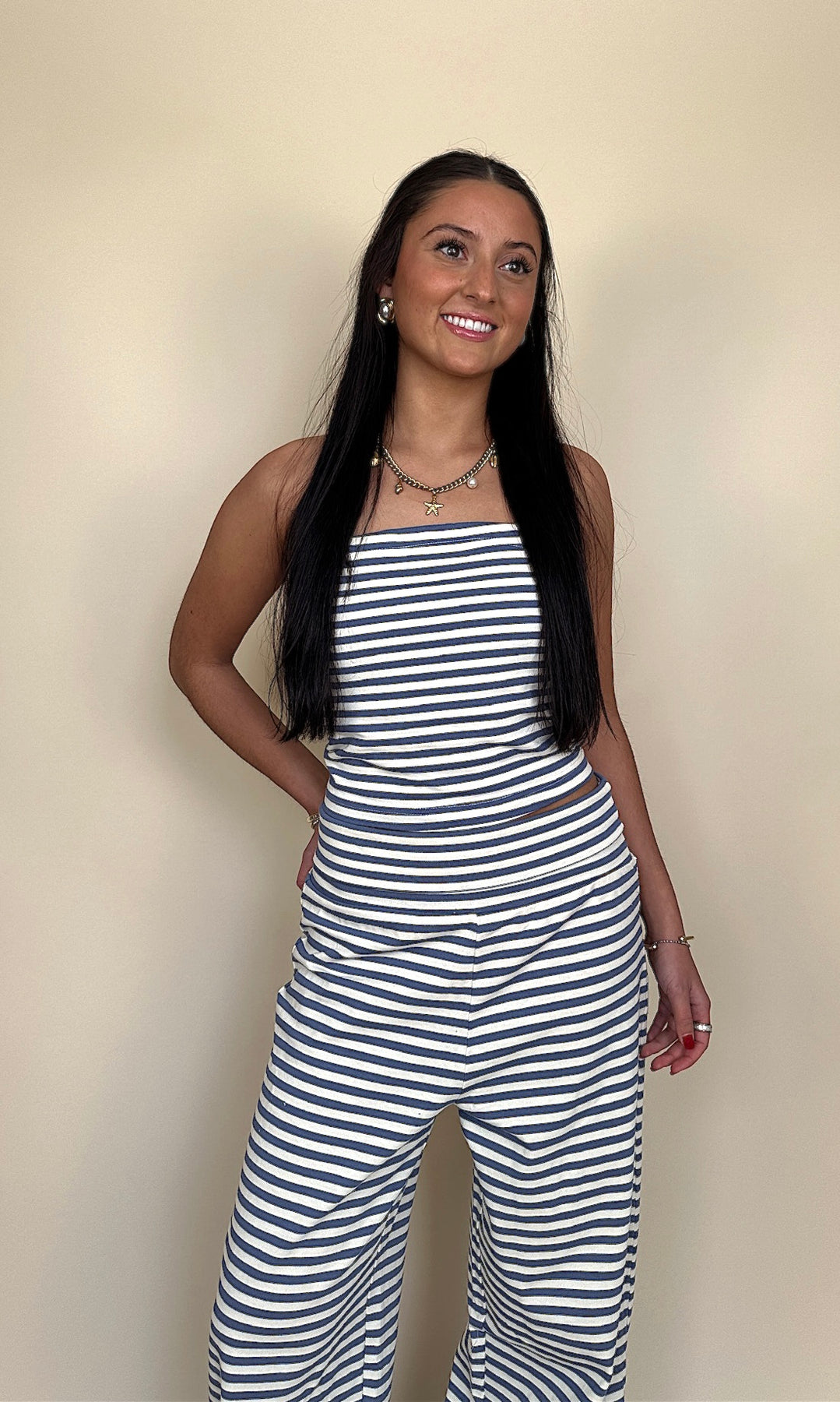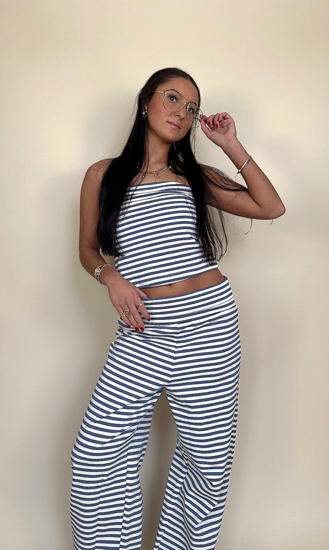 We are OBSESSED with these blue and white striped fold over lounge pants!!