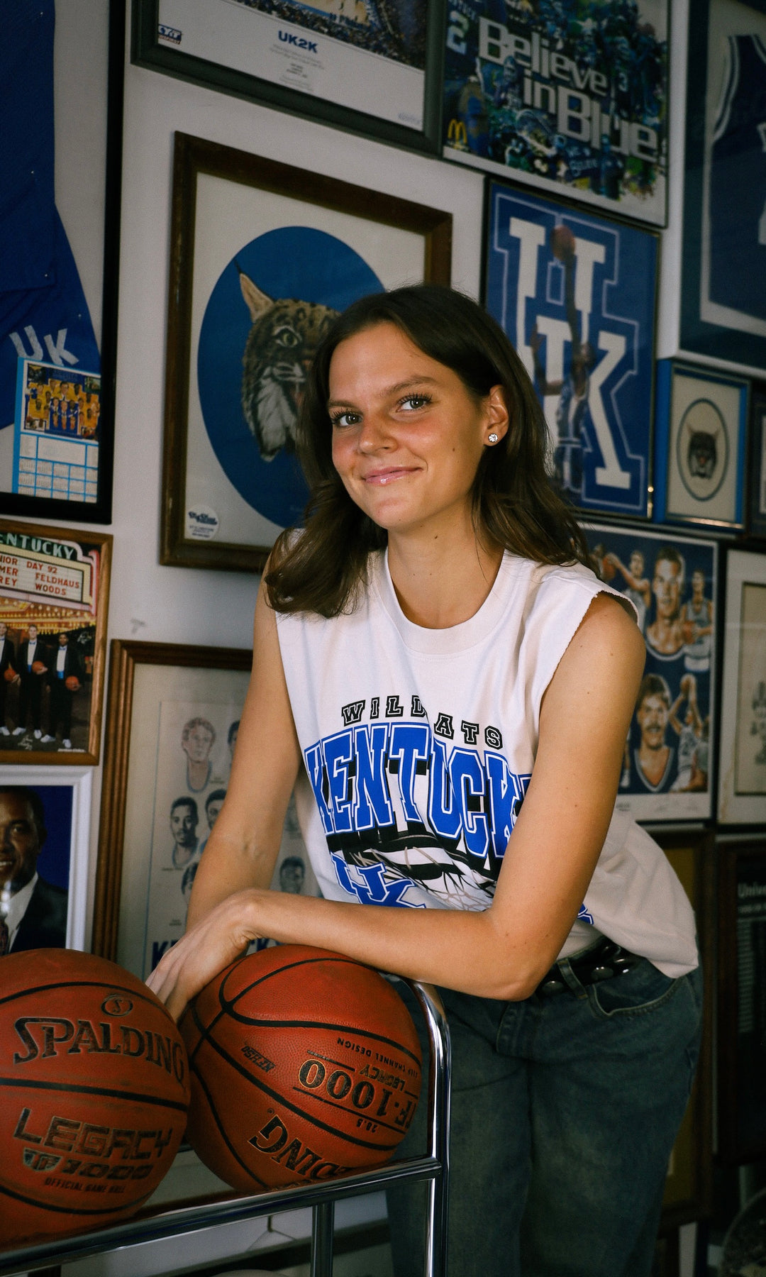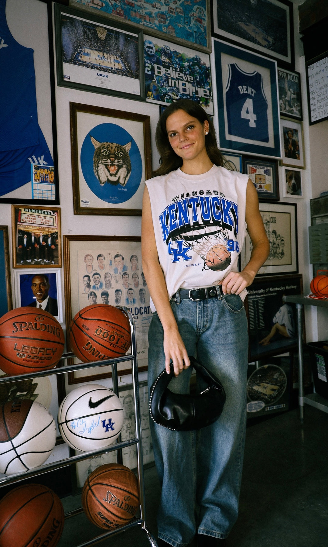 Easy to wear vintage inspired Kentucky gameday tee! Pair it with leather pant, belt, and oversized jacket for a night spent at Rupp!
