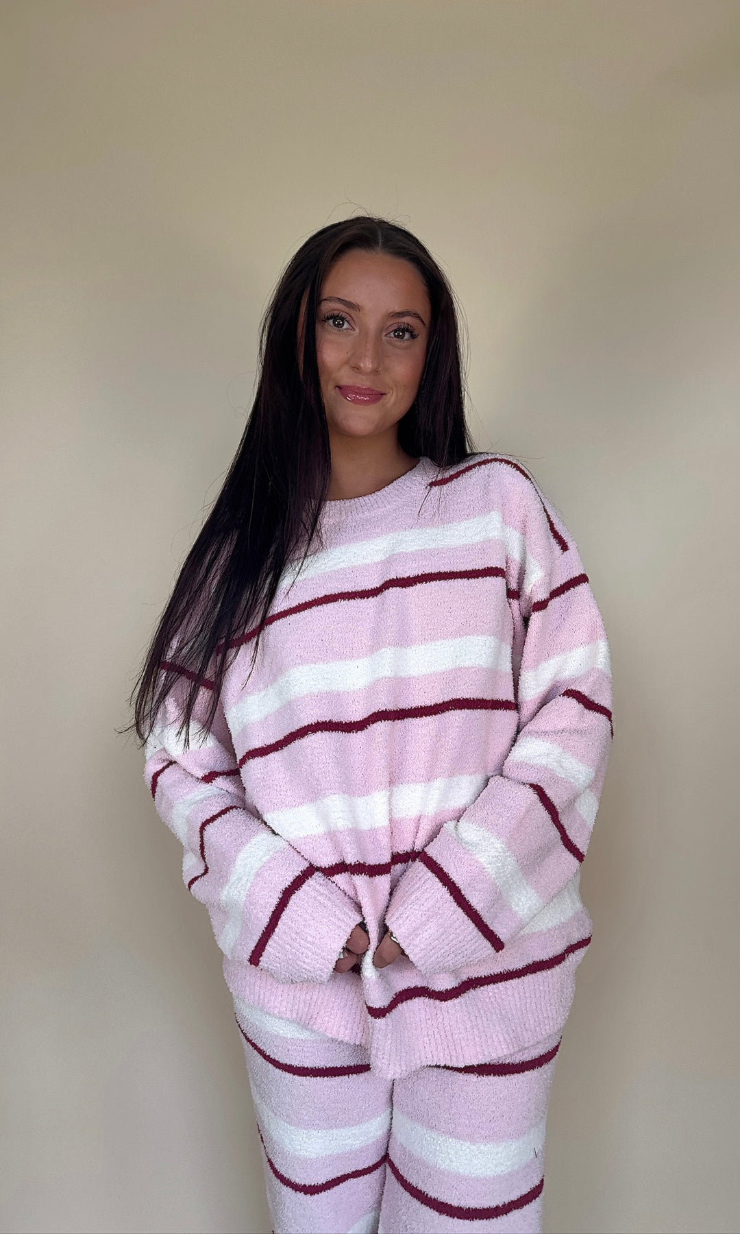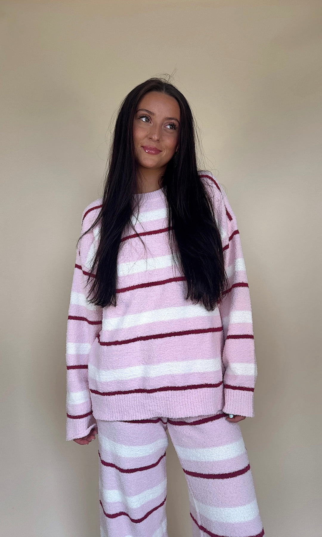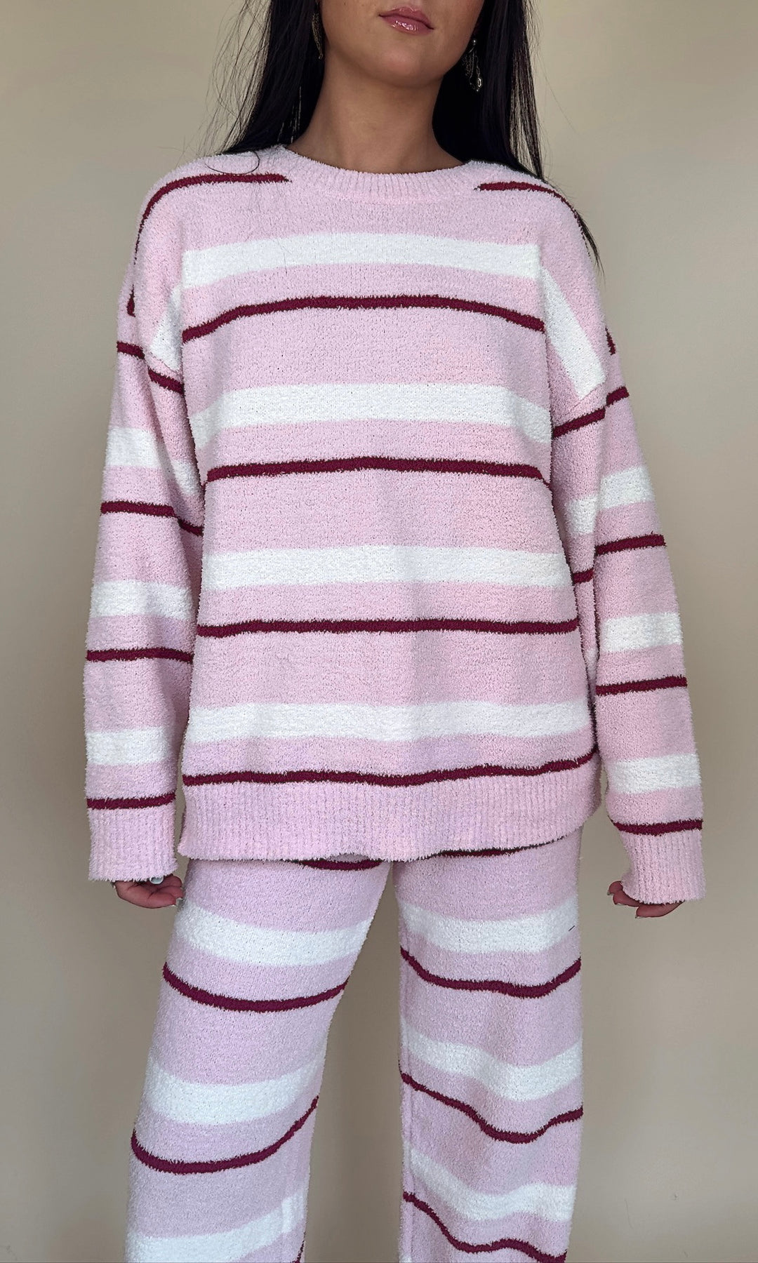 This pink and cream sweater is the SOFTEST most COZY piece. Grab one to keep you warm on chilly days!!