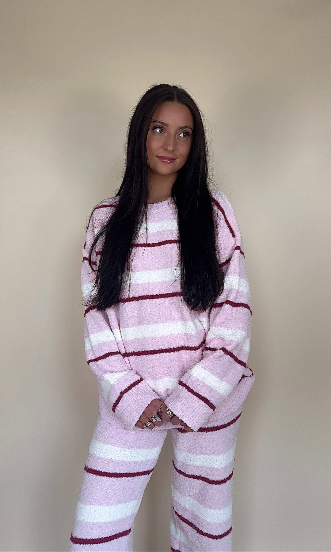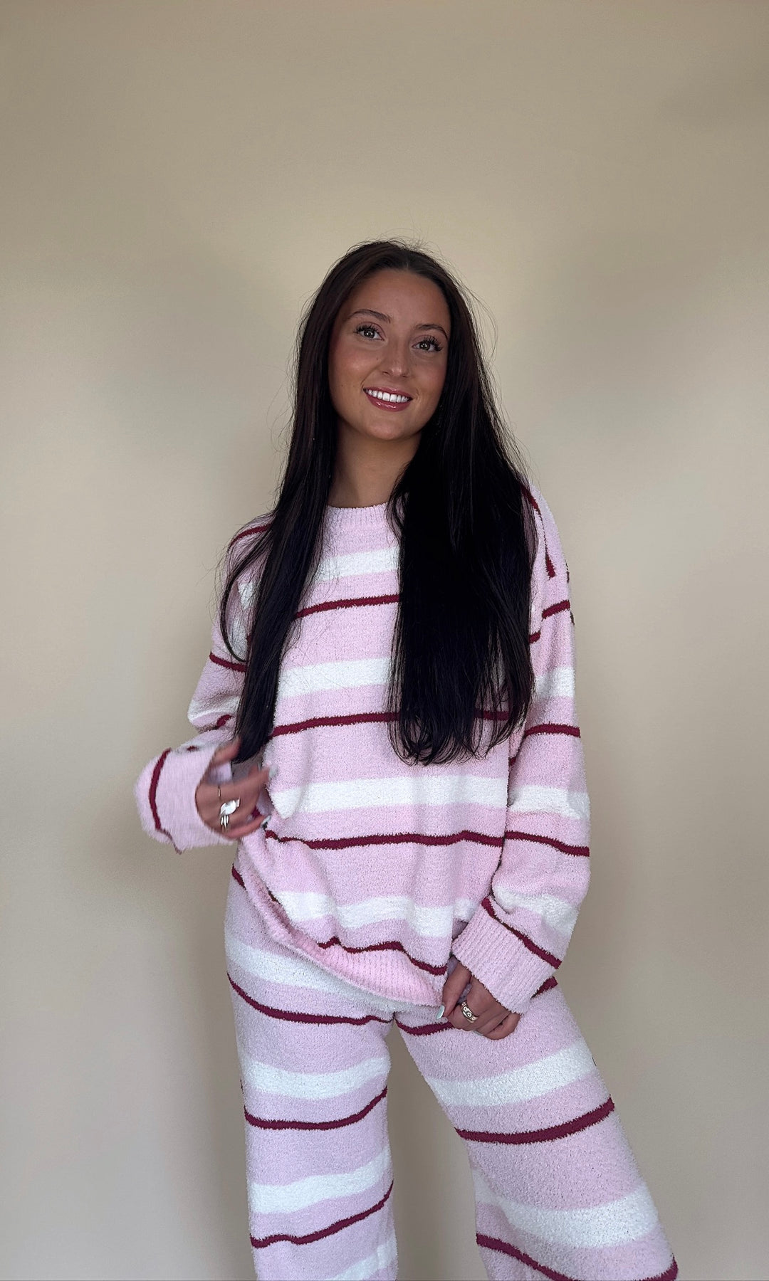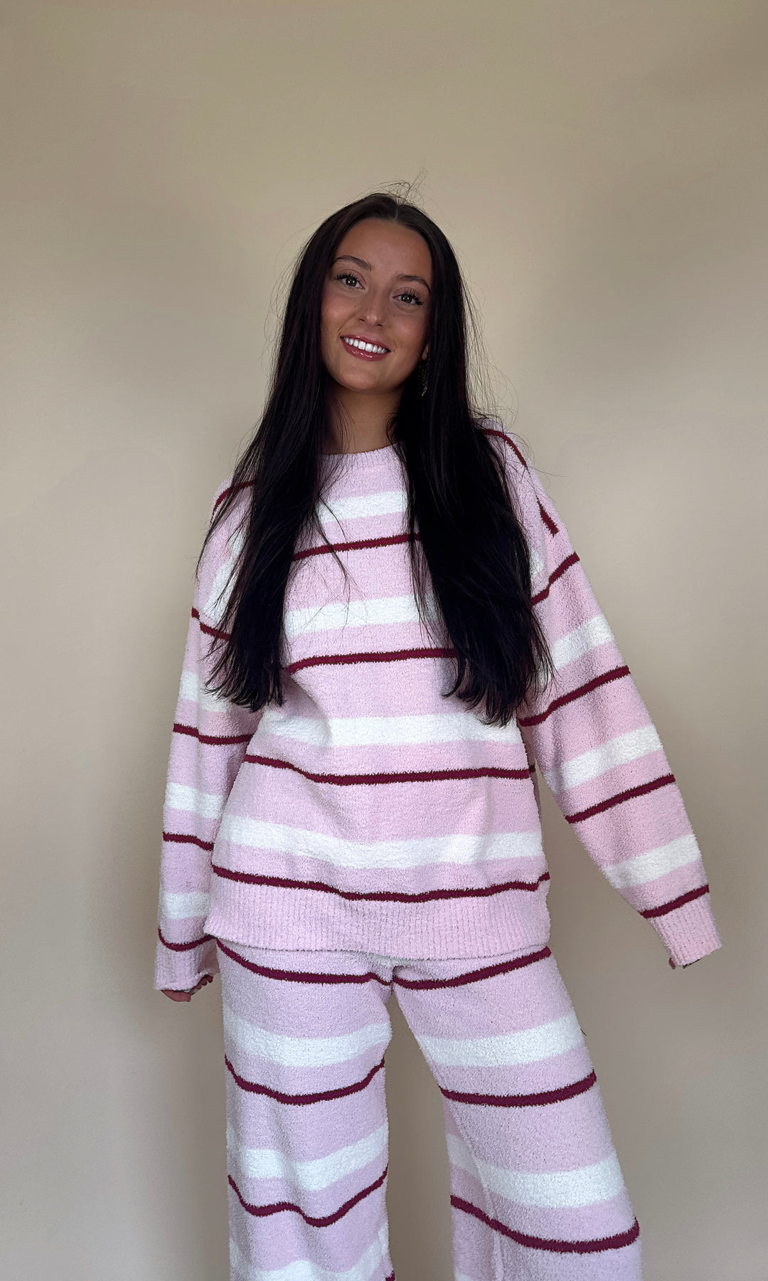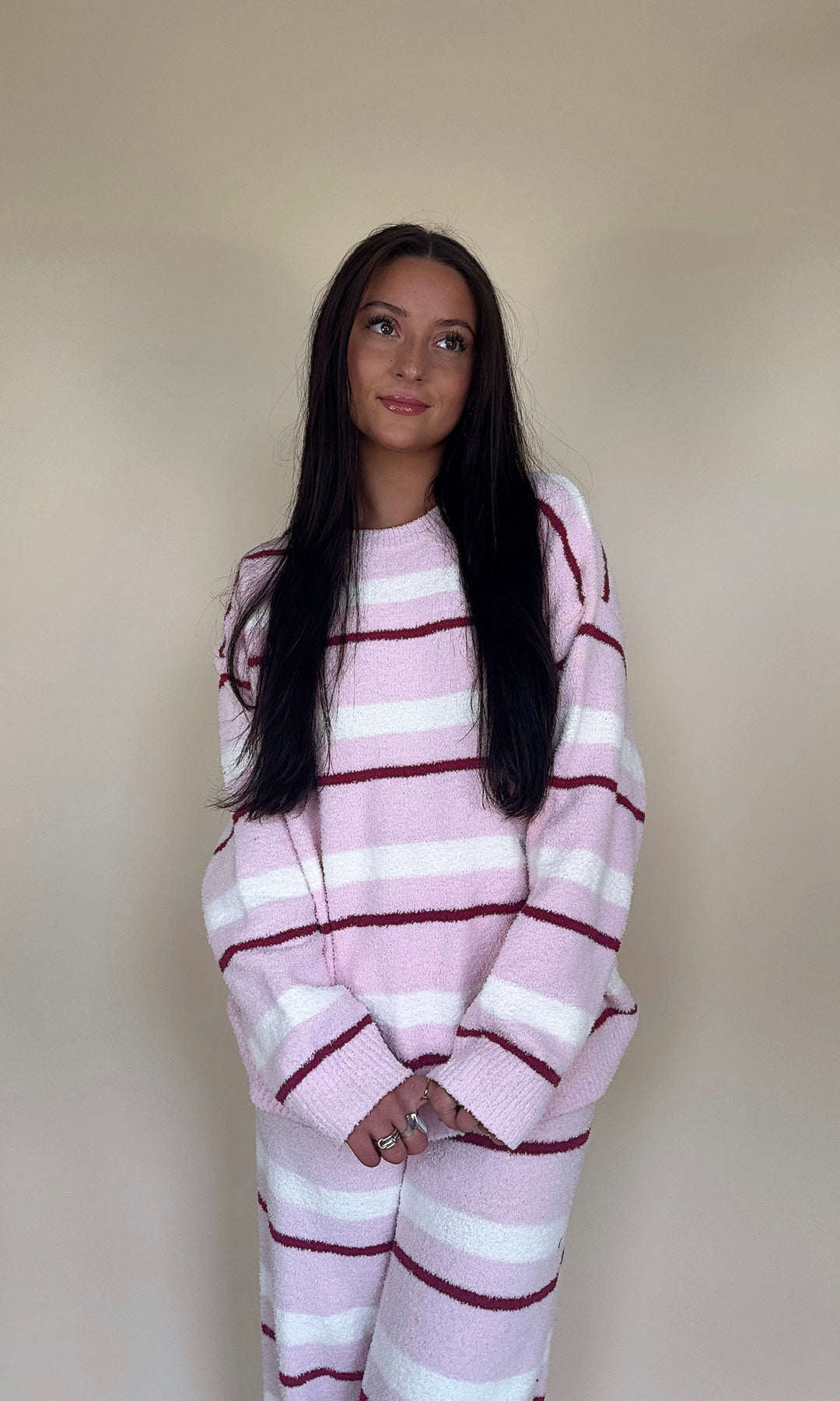 This pink and cream sweater is the SOFTEST most COZY piece. Grab one to keep you warm on chilly days!!