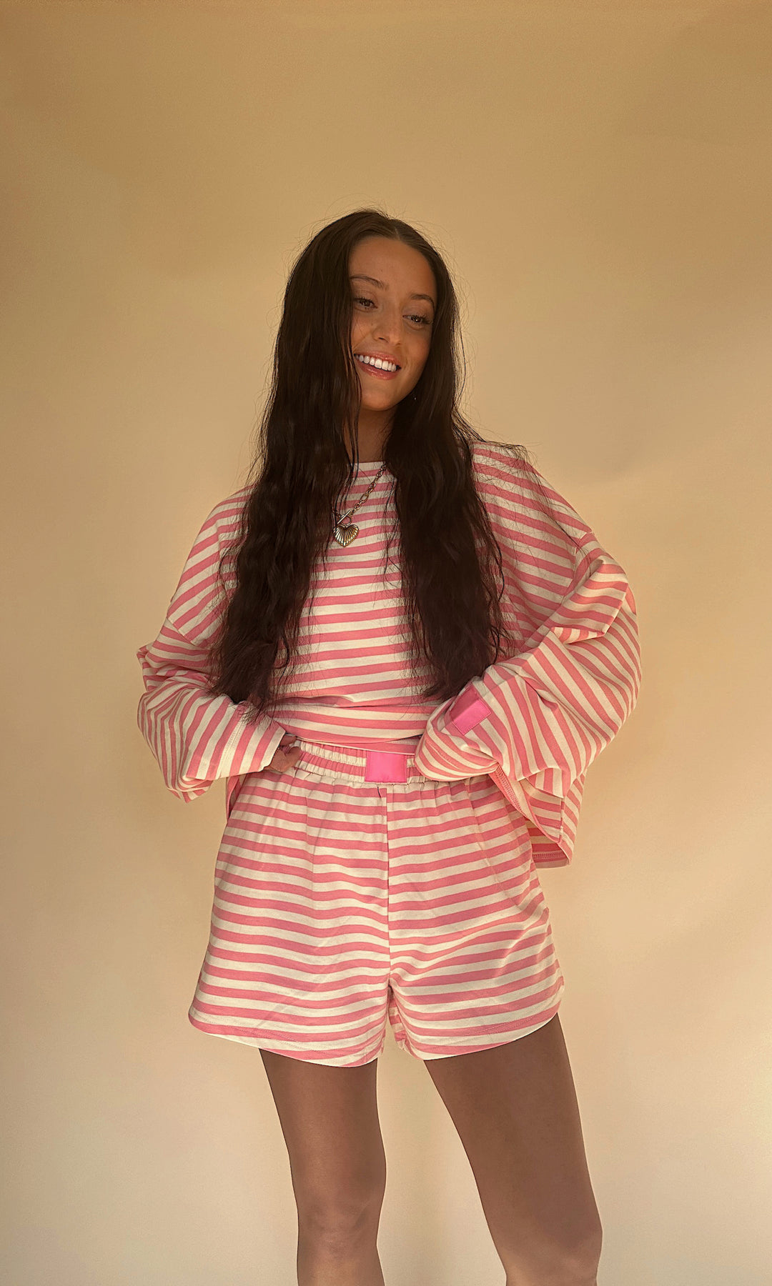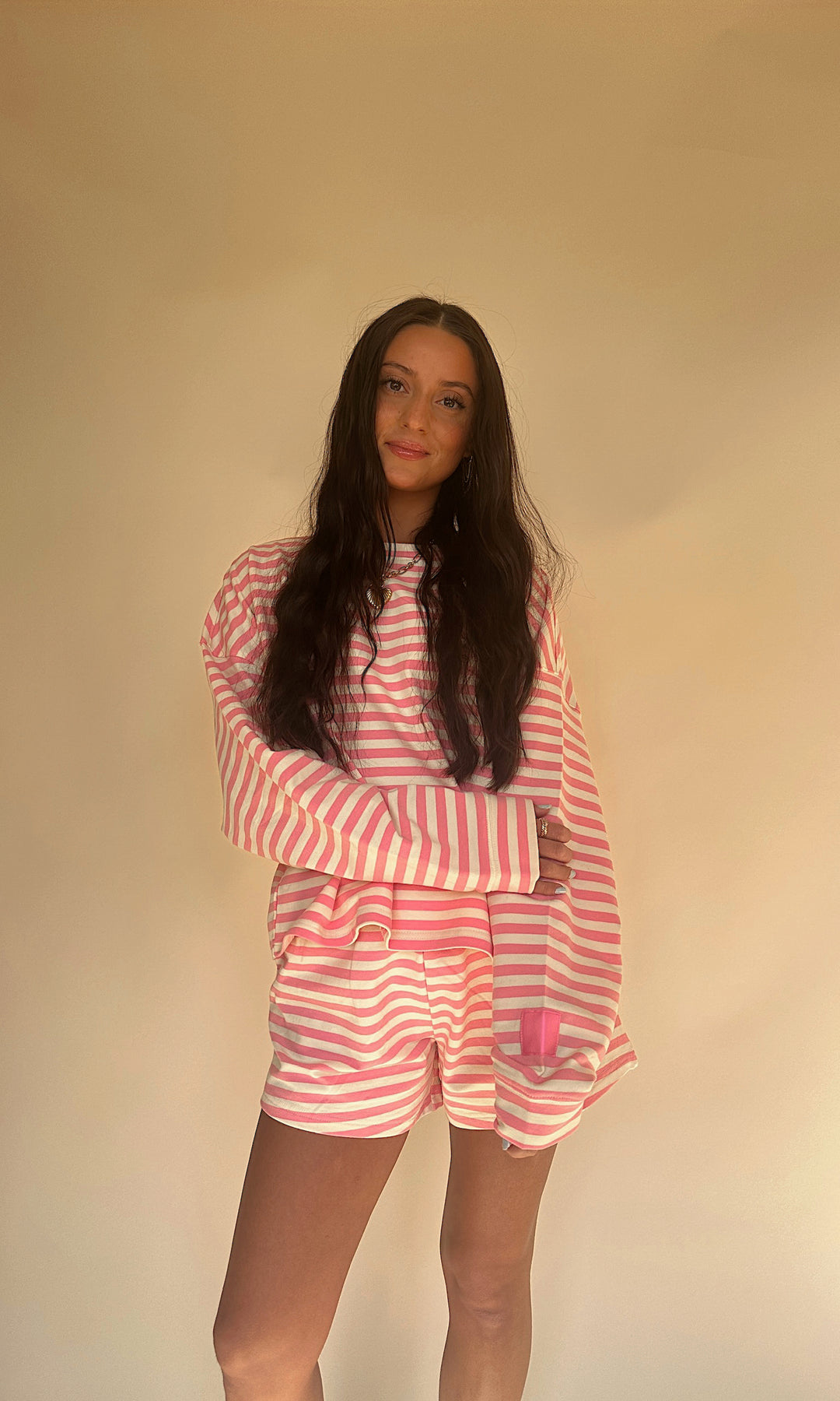 Easy to layer and wear striped longsleeve, featuring a pink and cream stripe!