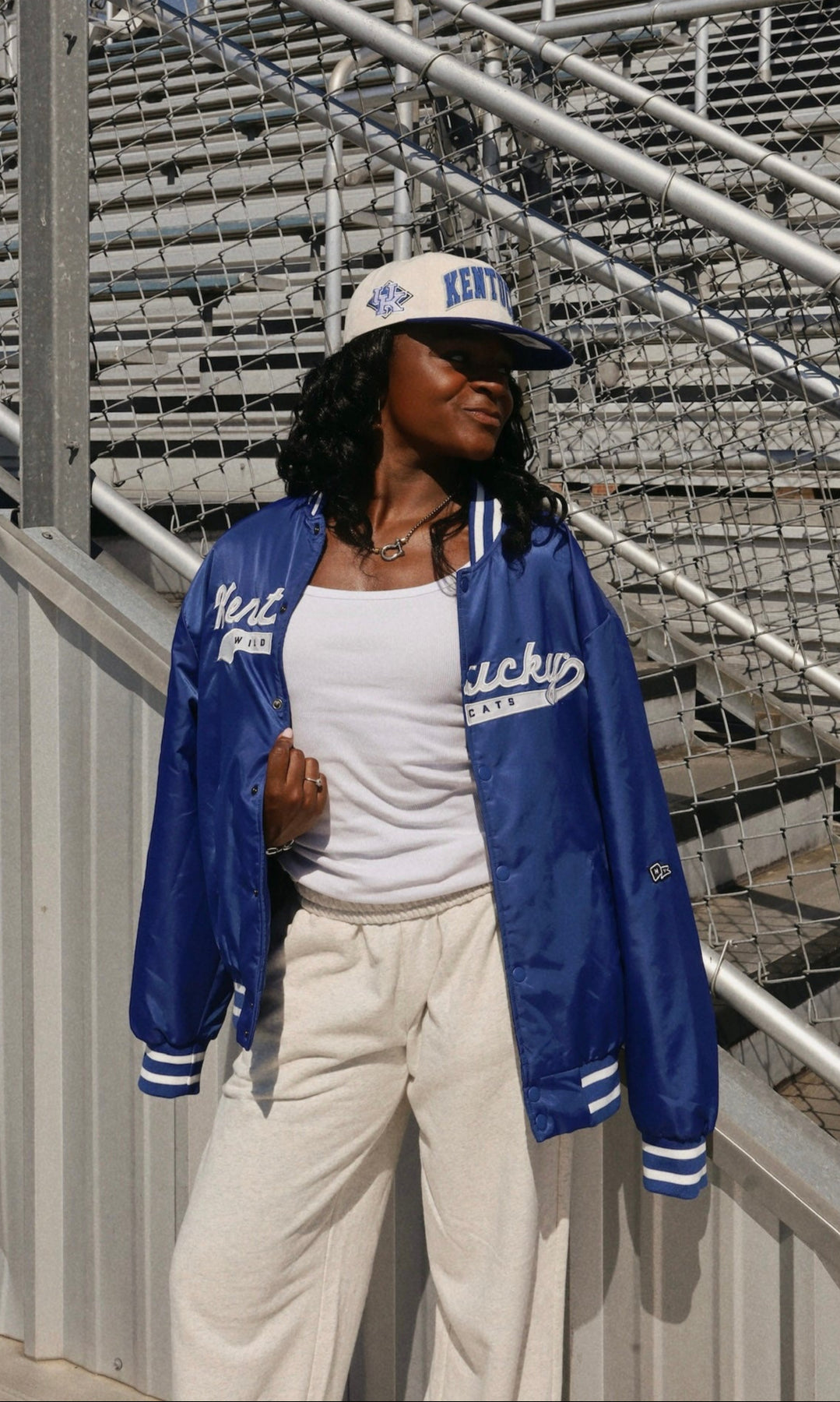 Cold gamedays are OTW and you need to be prepped and ready with our NEW arrival! This cutie cropped varsity jacket is perfect to pair with leather pants!