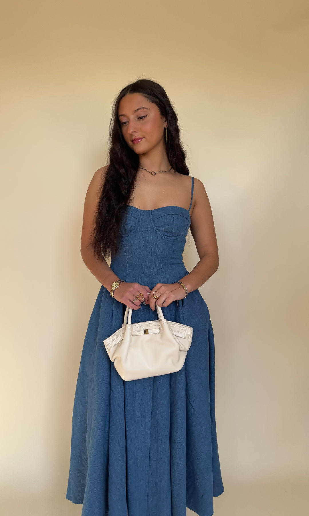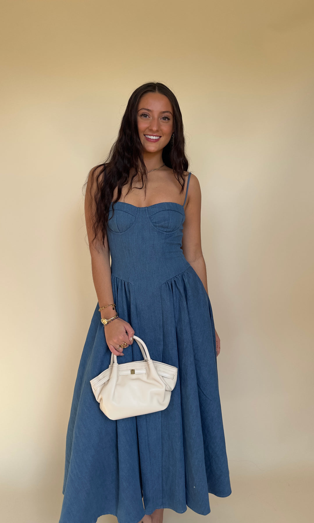 This denim drop waist dress is perfect for every single occasion! Keeneland? Yes! Railbird? Yes! Going out to drinks with friends? Duh! This beautiful dress will NEVER let you down.