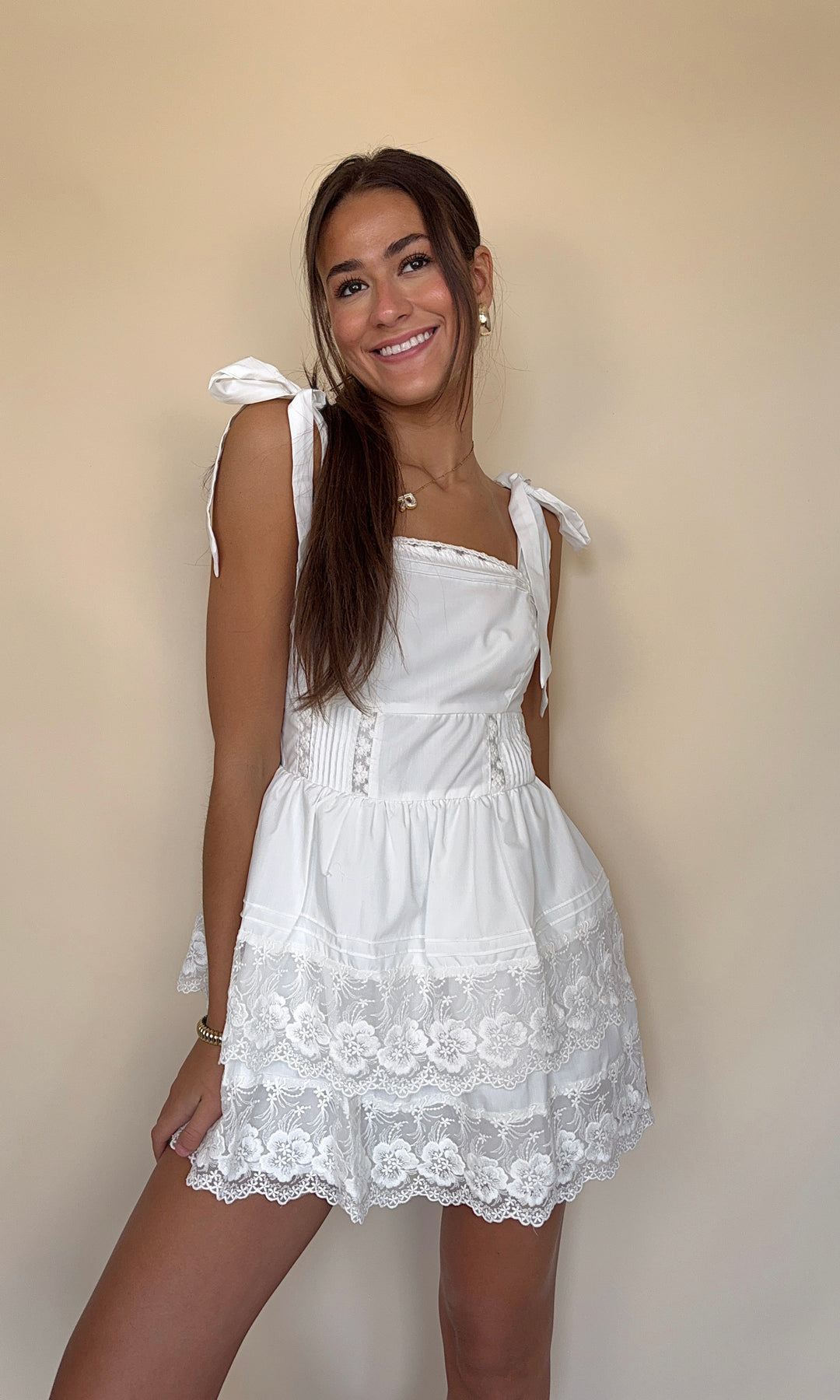 We love a dress with a feminine touch, this baby doll piece with lace detailing throughout and bows on the straps is guaranteed to turn heads anywhere you wear her.