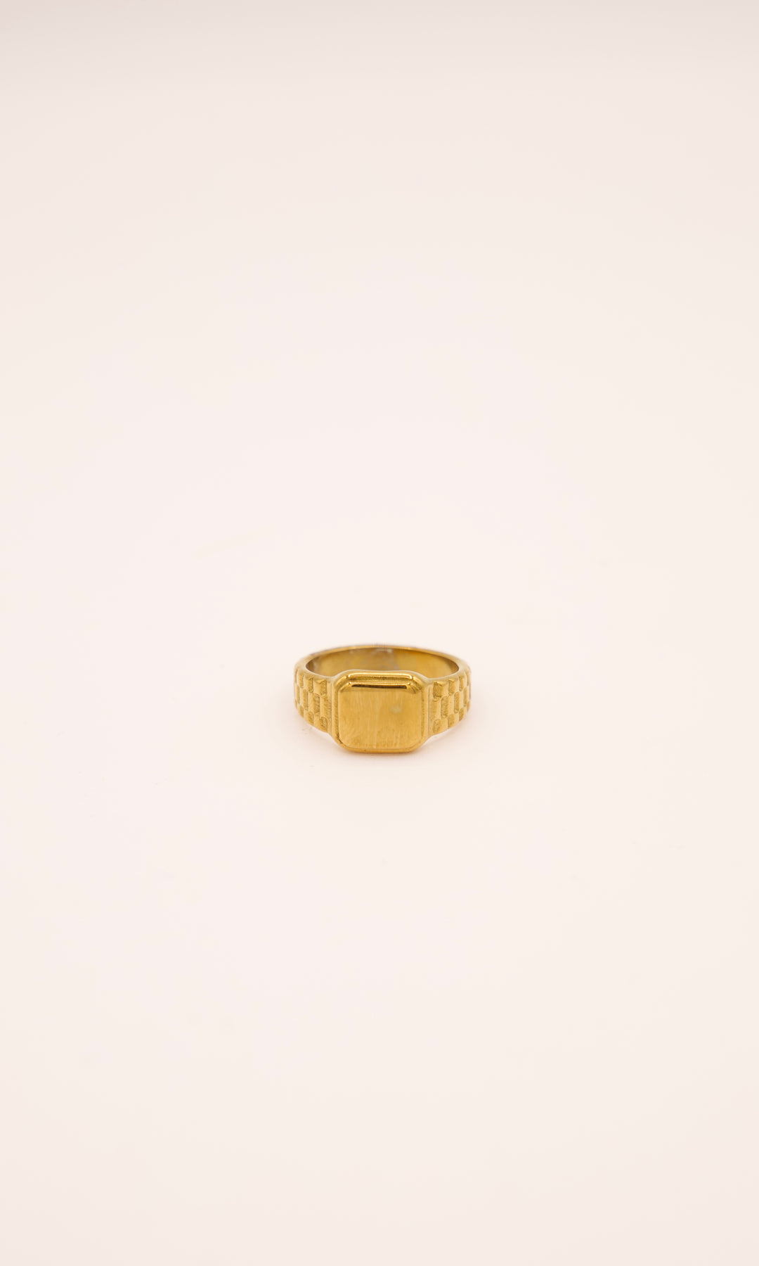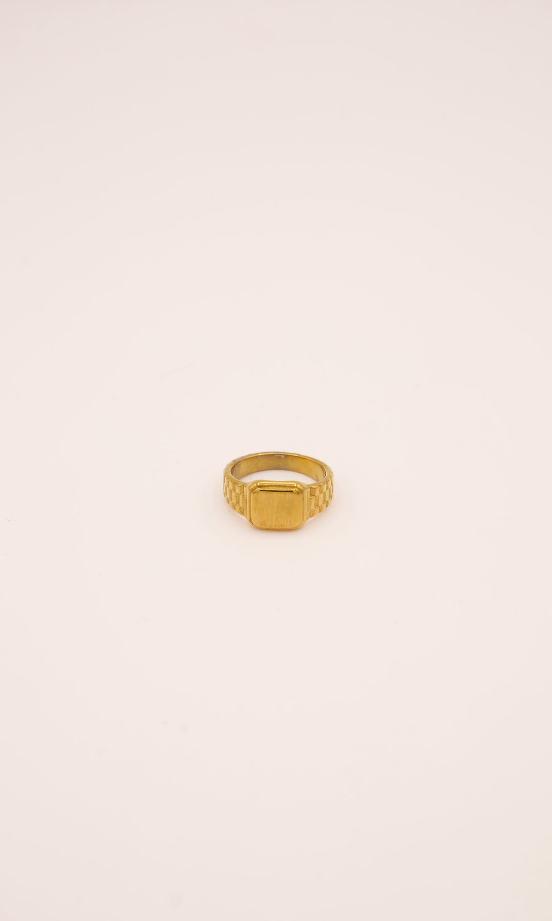 • Watch band ring with a gold glossy finish over the front.