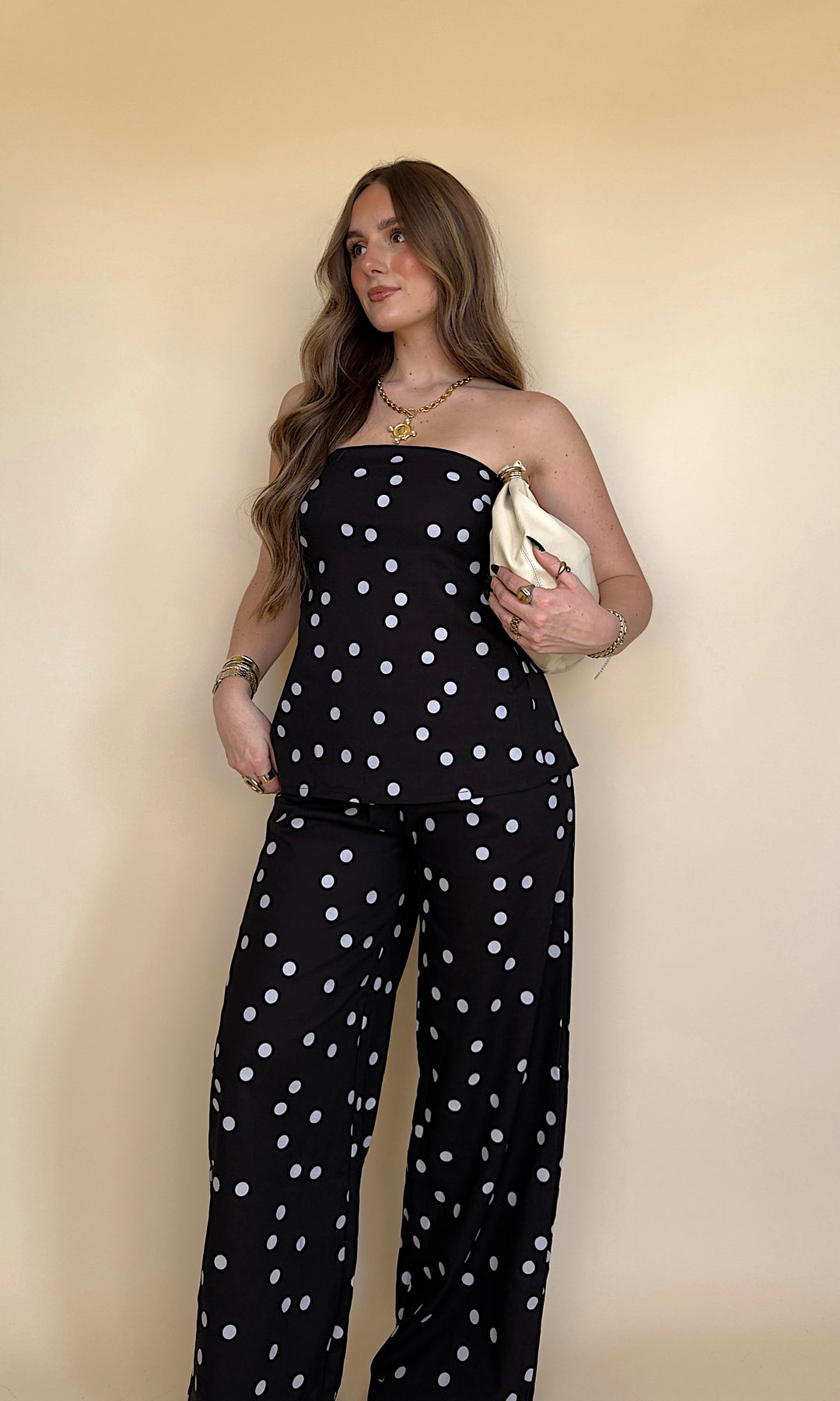 Our Crossed A Line Pants are designed in a breathable linen fabric with a classic polka dot print that never goes out of style. The mid rise, tailored fit creates a sleek silhouette while keeping things light and effortless..