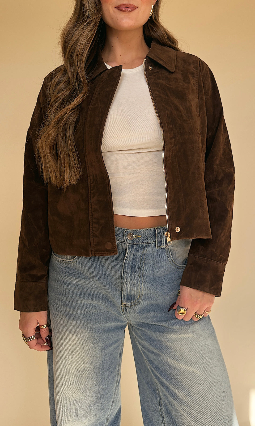 Suede sets are the reason we can't WAIT for fall! You need this camel color cropped jacket with this iconic suede material!