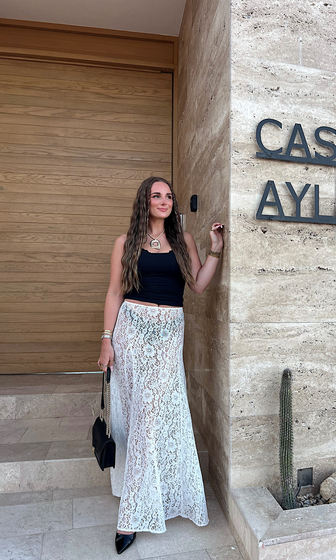 The skirt of our DREAMS! This fully lace maxi skirt would be SO cute for any concert you're going to this summer.
