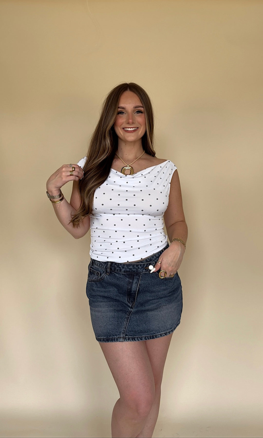 A denim skirt is a capsule wardrobe MUST for the warmer months and we got the perfect one for you! She has a dark denim wash with an asymmetrical button for the cutest detailing!