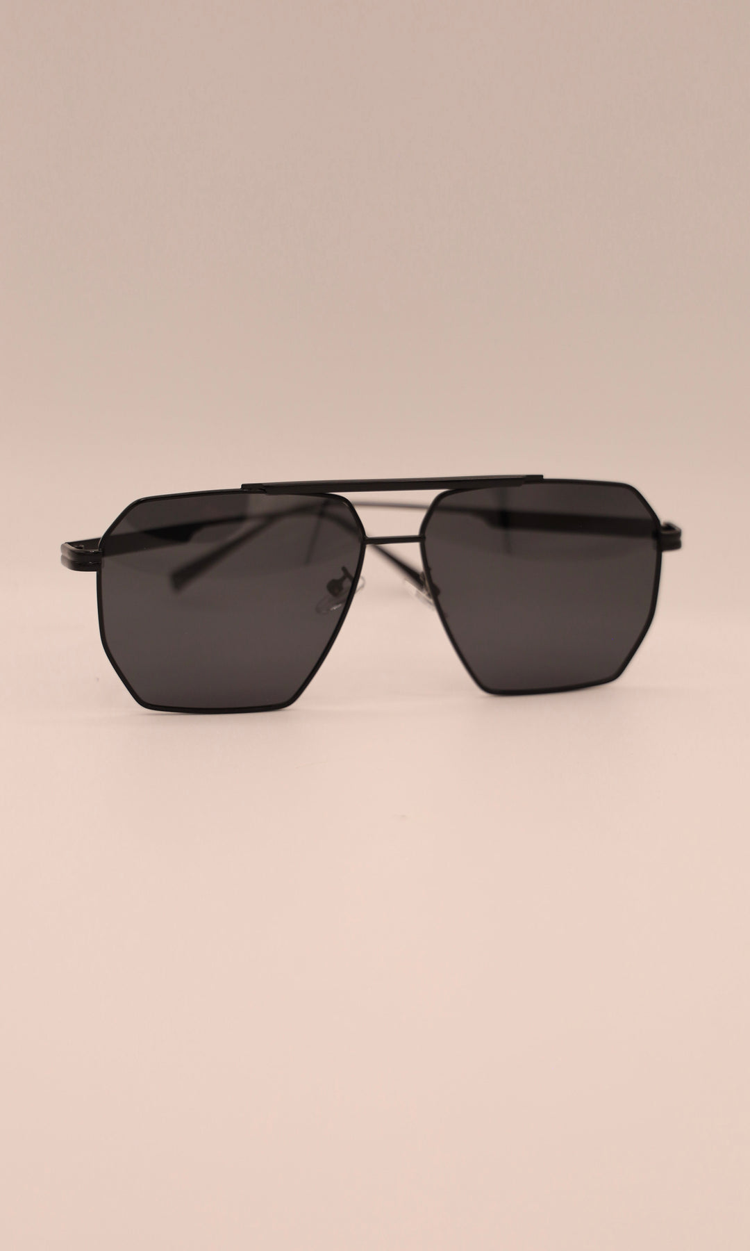 Gold/black frame, aviator style sunnies with retro double bar shape across the bridge.