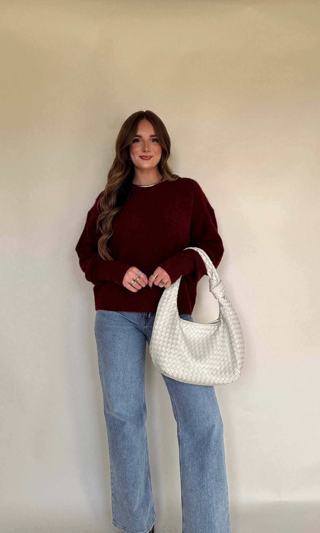Burgundy is ALWAYS our color of fall! This cropped red sweater has a nice thick material and is ready for this holiday season!