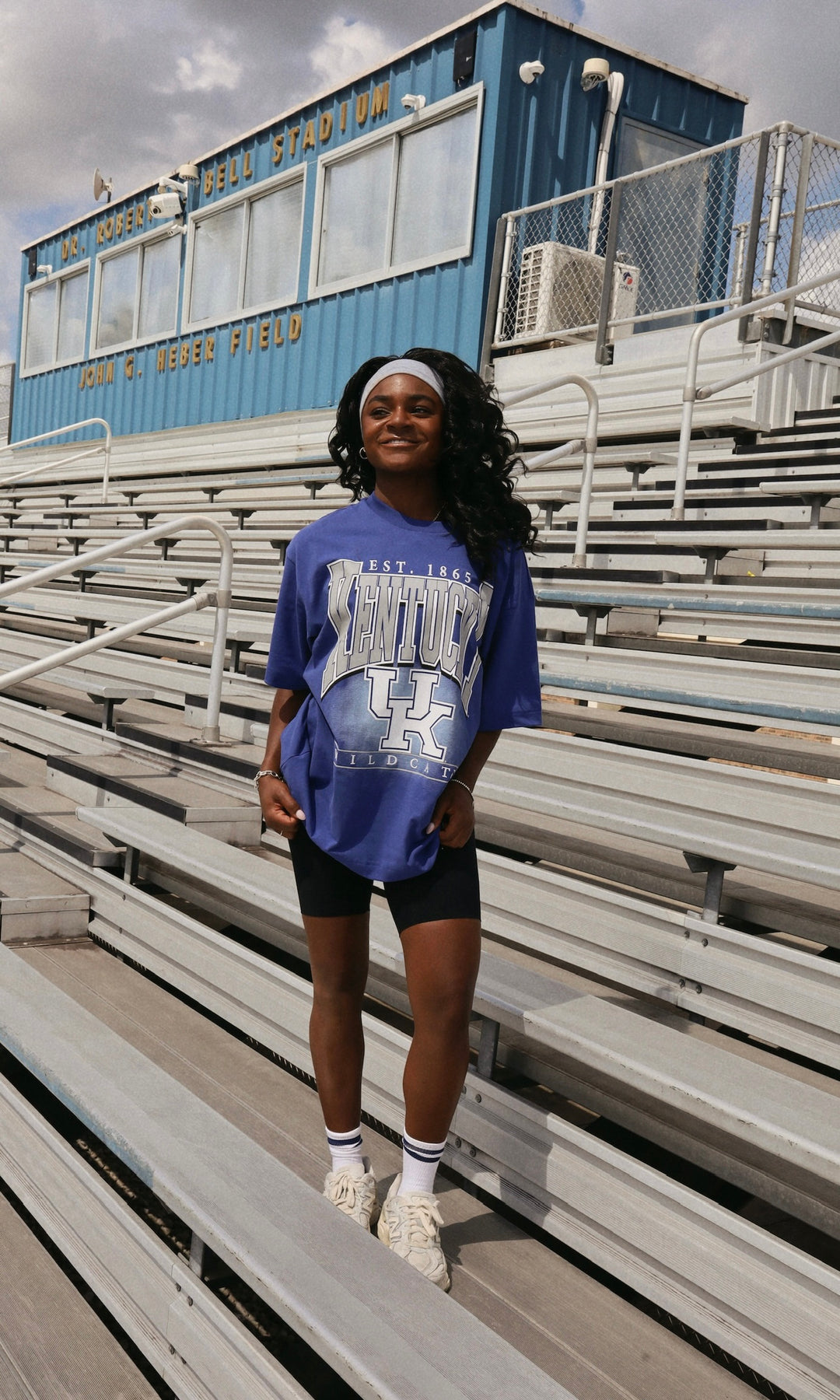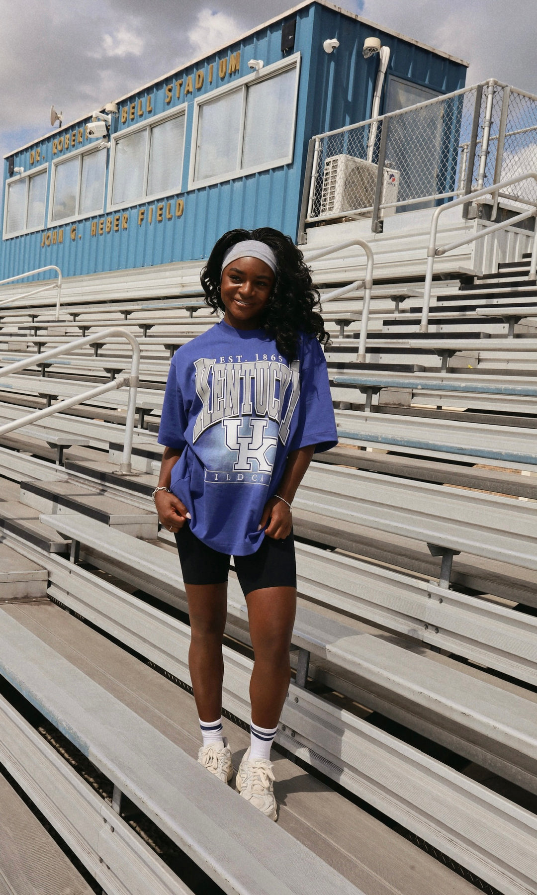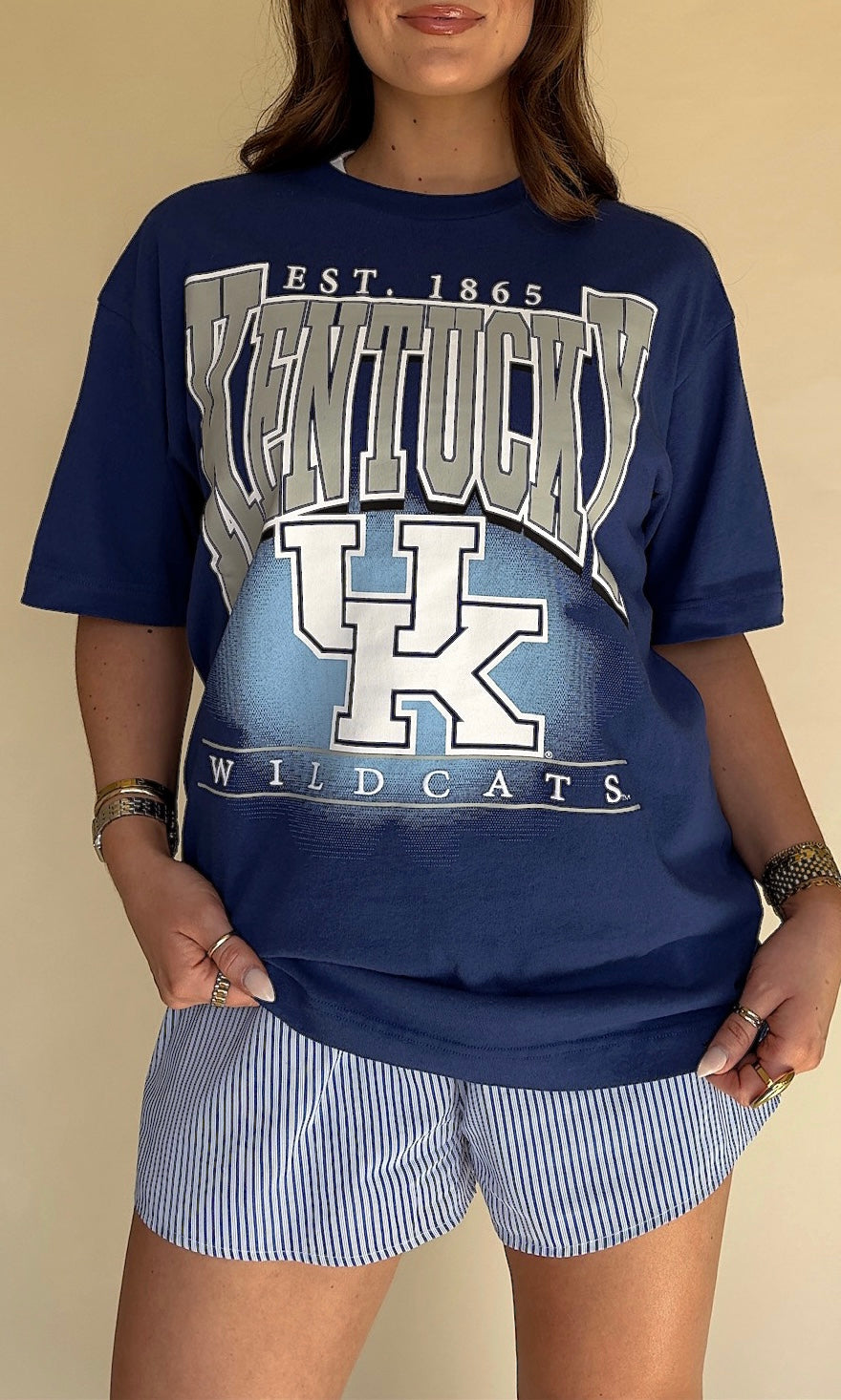 A bold royal blue Kentucky Wildcats tee featuring vintage-inspired lettering and a standout UK logo—perfect for showing off your team spirit in style!