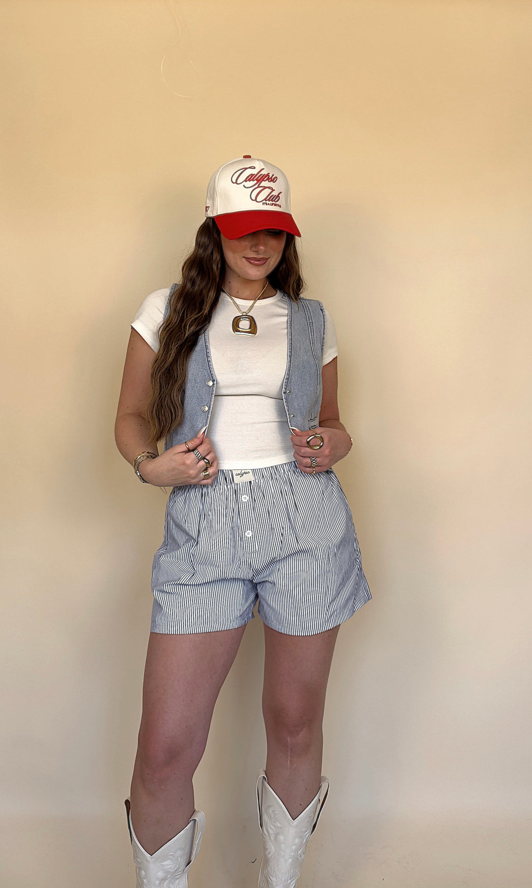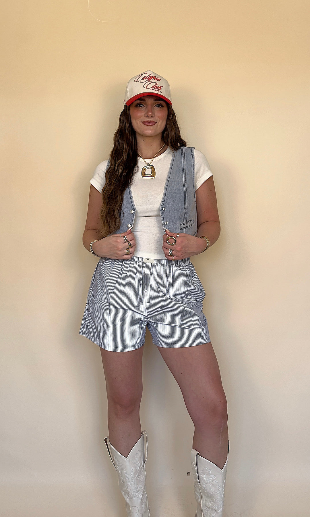 A denim vest is THE piece you need for any concert! She has a light wash with silver buttons and a cropped fit.
