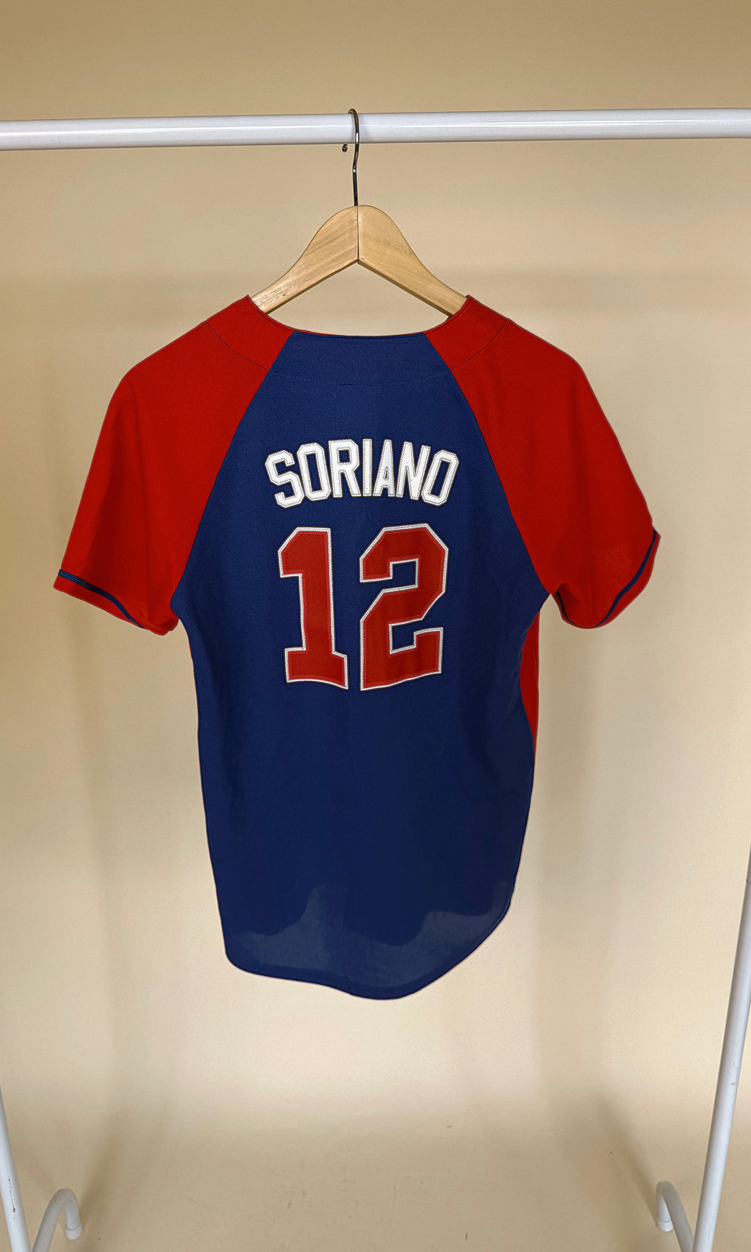 Red and blue vintage Alfonso Soriano Chicago Cubs jersey.