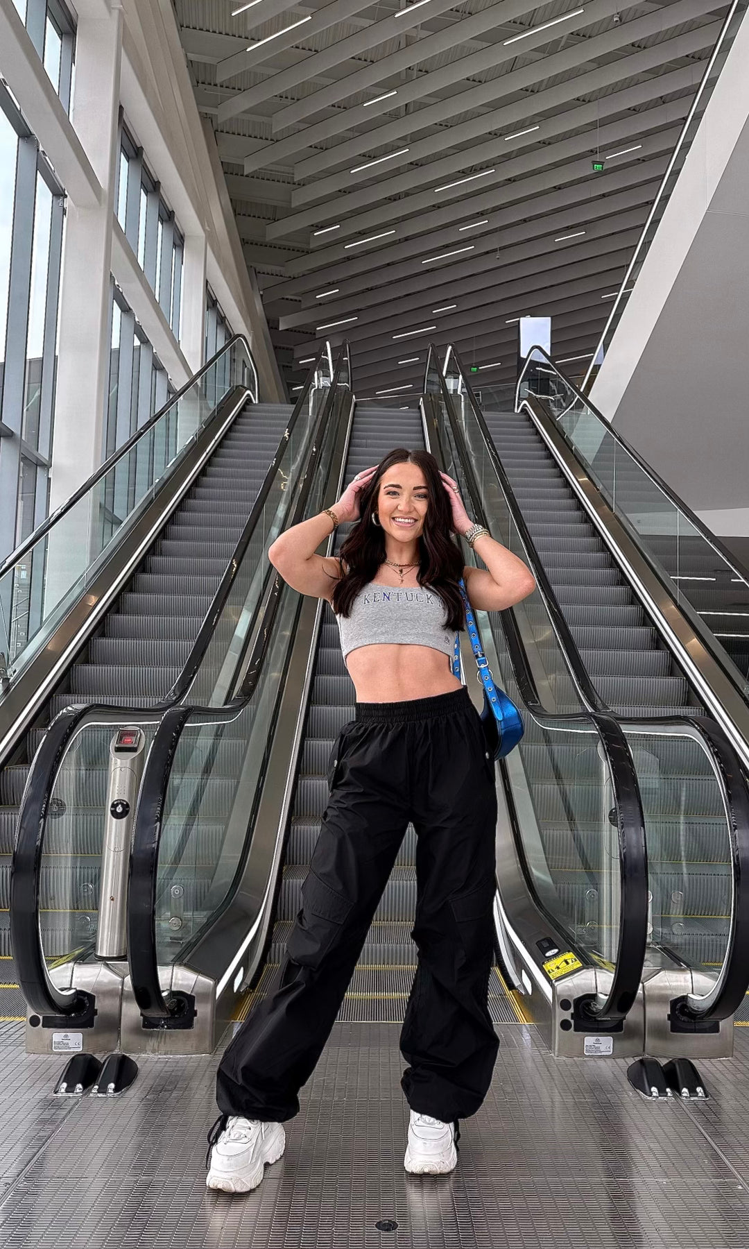 NEW CATURDAY FIT -- Classic Kentucky logo cropped tank top in a thick cotton UK blue and heather grey material!