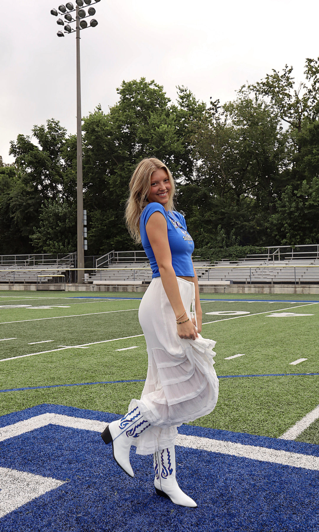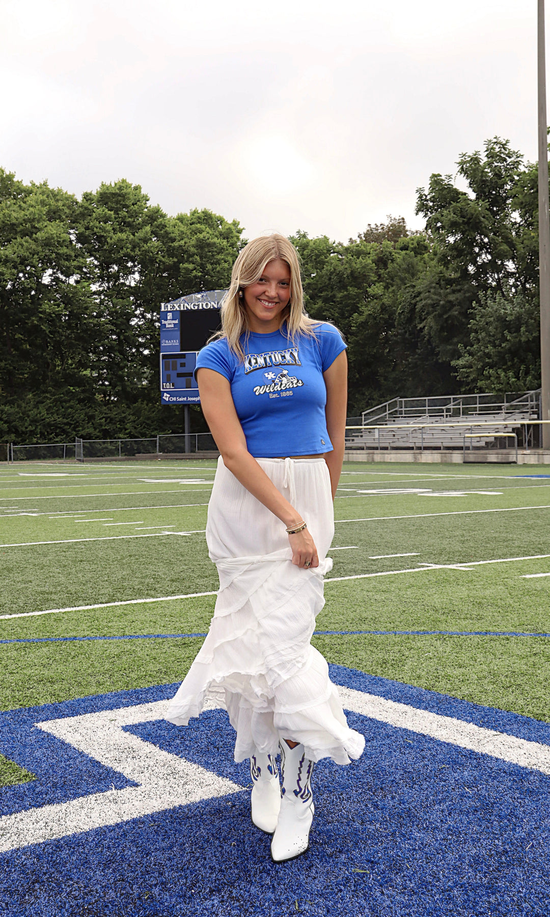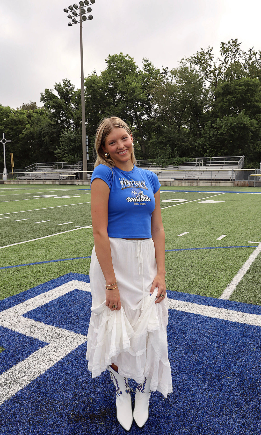 Baby tees are always the way to go for game day! This slim fitting top with a vintage inspired design is READY for Caturday.