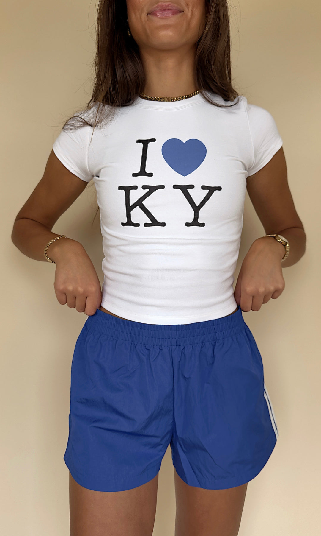 • Working out, going to class, or to a darty... these royal blue track shorts are THE piece for any outfit! Perfect for all our Kentucky girls! Layla is wearing it paired with Team Huddle Top