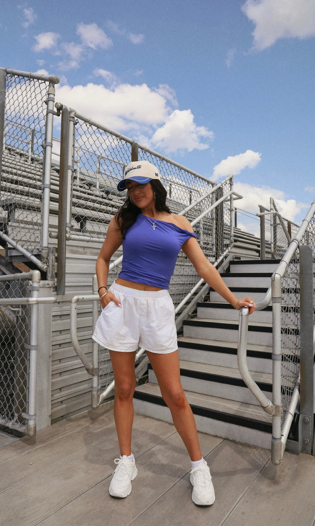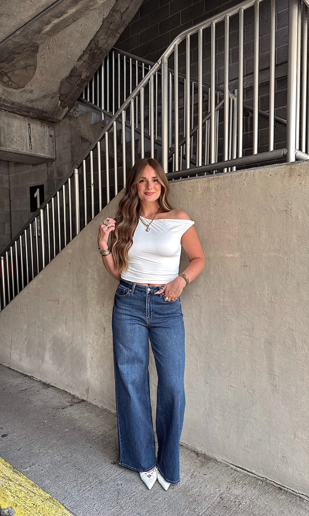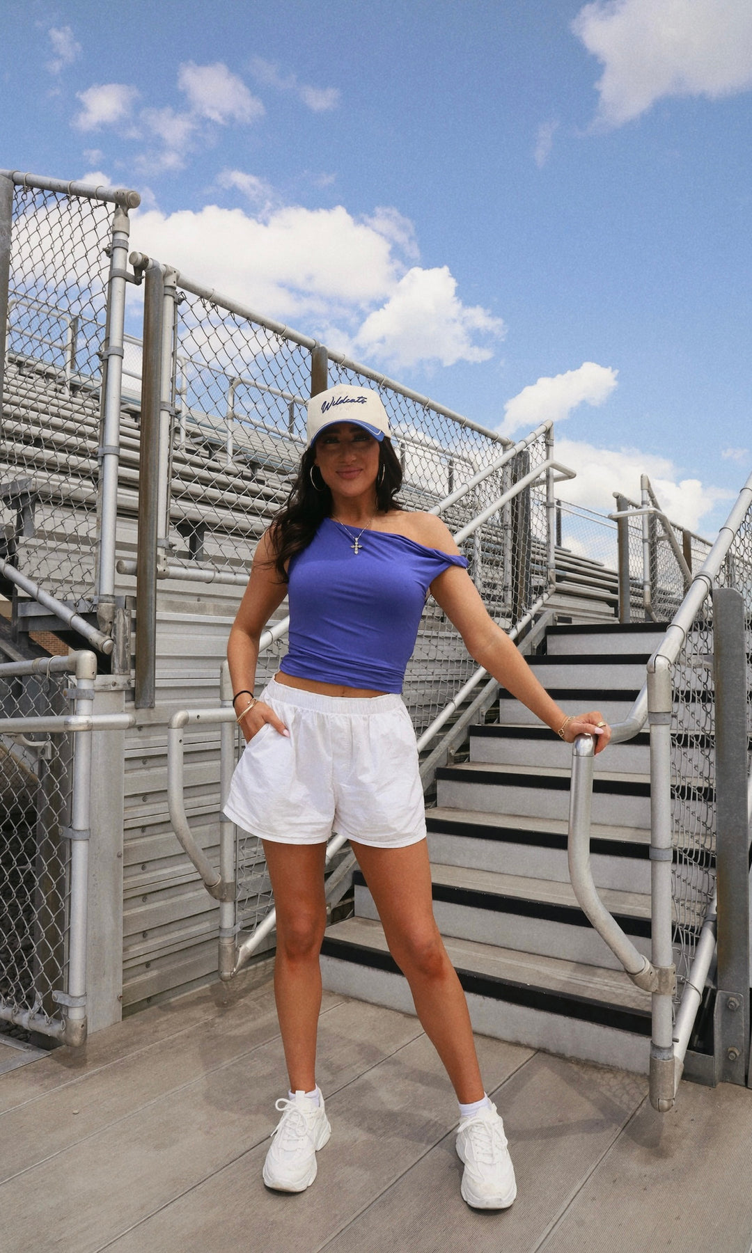 Our take on the top that everyone LOVED, now in black, royal and white! This buttery soft material with an off the shoulder cut is so classy!