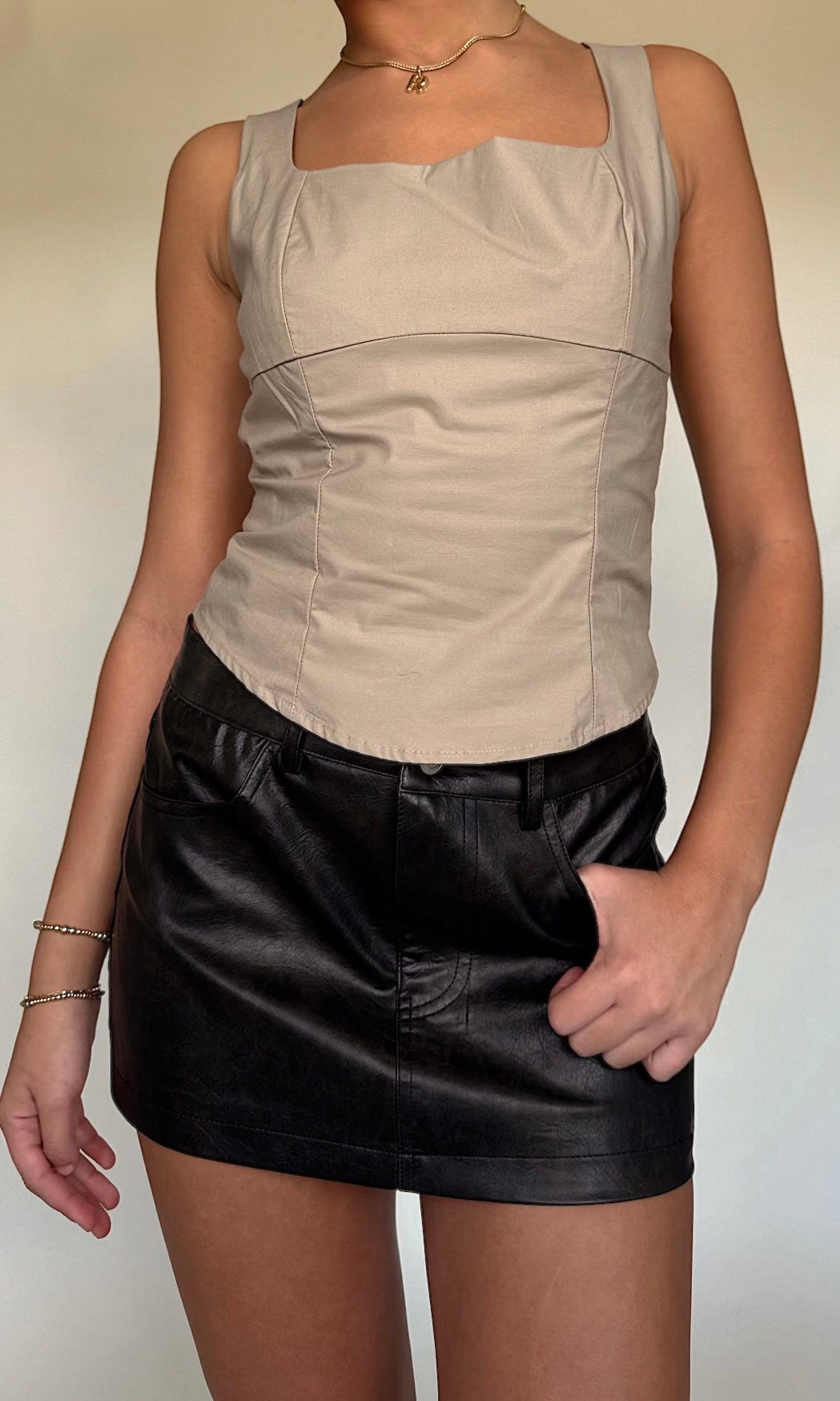 • The IT girl going out top for fall! This longer corset with a tie in the back to secure is ready to be paired with a leather jacket and a skirt for a night out!