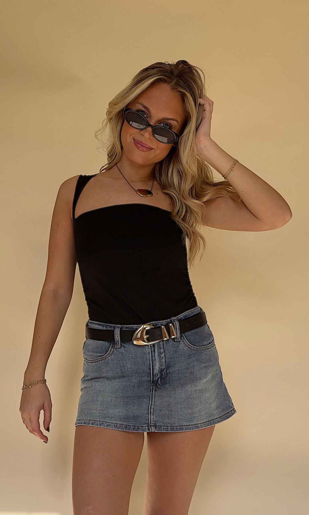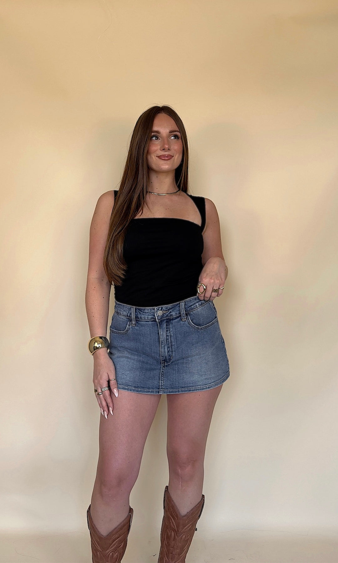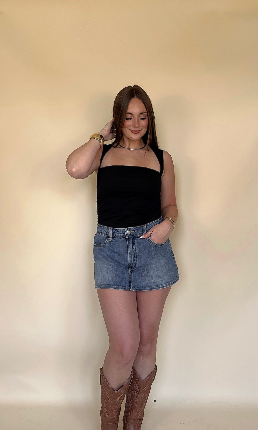 The perfect going out top is finally here! This square neck, classic black tank with ruching on the sides is SO flattering and can go with any bottoms in any season.